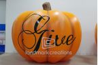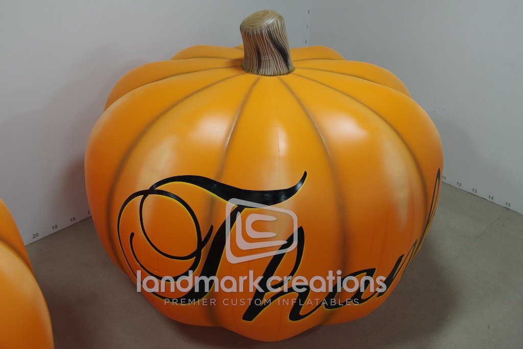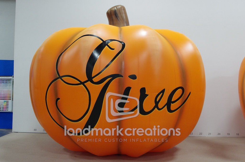 This festive inflatable pumpkin pair was displayed during the Charlotte Center City Thanksgiving Day parade! Placed atop small rolling carts the inflatable 'Give Thanks' pumpkins wowed crowds!