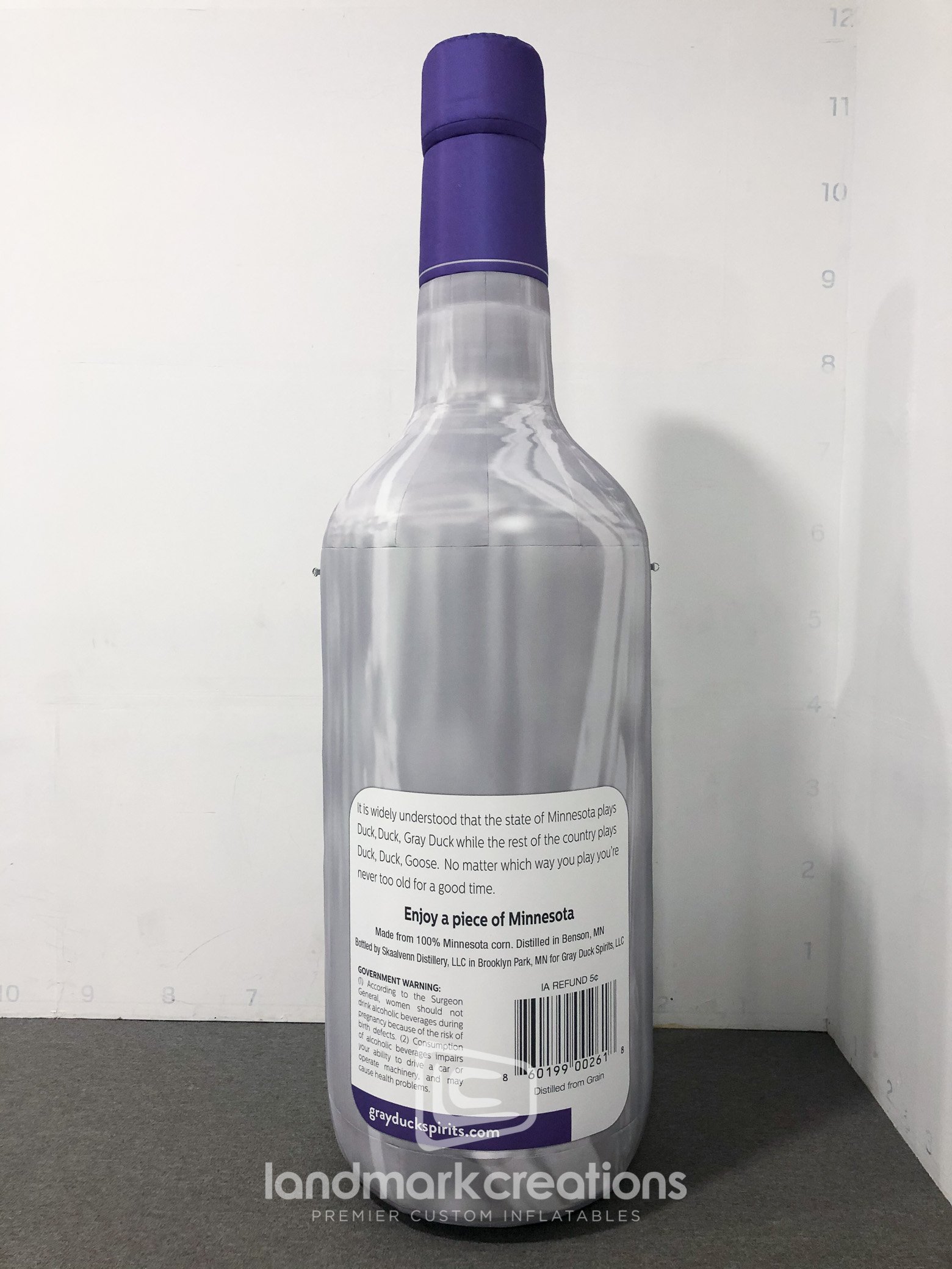 Minnesota-based Gray Duck reinforces branding at retail events & concerts with a giant inflatable replica of its Gray Duck vodka bottle.