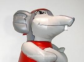 Inflatable rats, or union rats, are commonly used during protest and strikes by trade unions. This rat complete with hard hat and money bags is used by the IBEW Local 149 in Illinois.