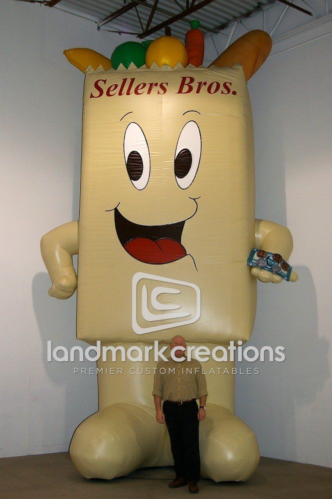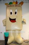 Sallers Bros., chain of grocery and convenience stores, uses their inflatable grocery bag mascot to advertise outdoors and increase foot traffic.
