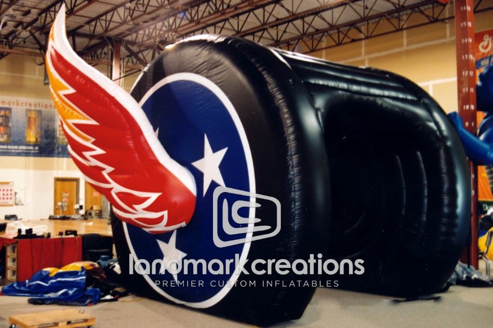 A creative spin on the classic hockey puck, this inflatable tunnel was designed for professional hockey teams to use when entering the rink!