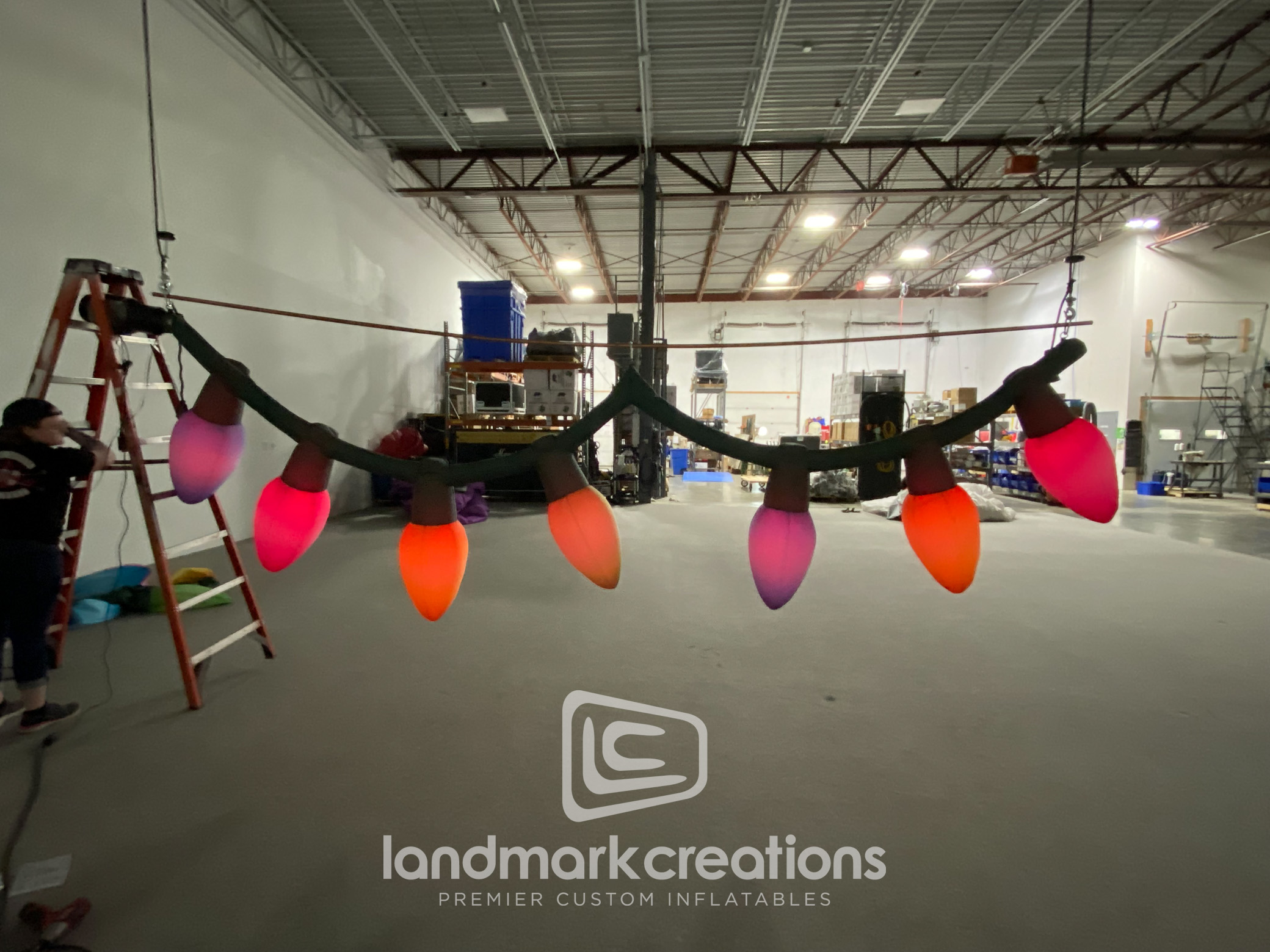 Custom inflatable strand of holiday lights add a scenic element to a theatrical tour for Little Baby Bum Live! Custom inflatable displays can be created in any shape, size, or style for live shows or televised events. Programable, printed textures, and fabricated components can be integrated into all of our inflatable displays to ensure they'll perform well on stage.