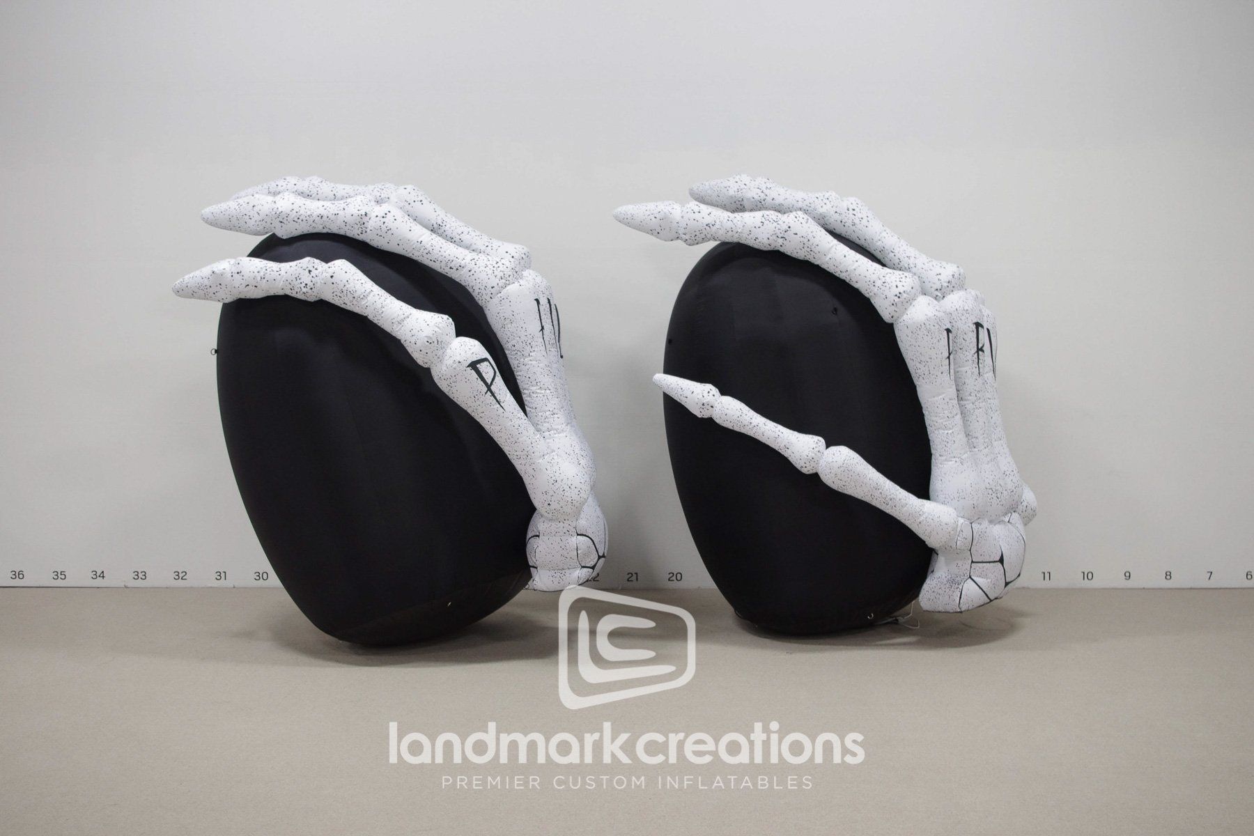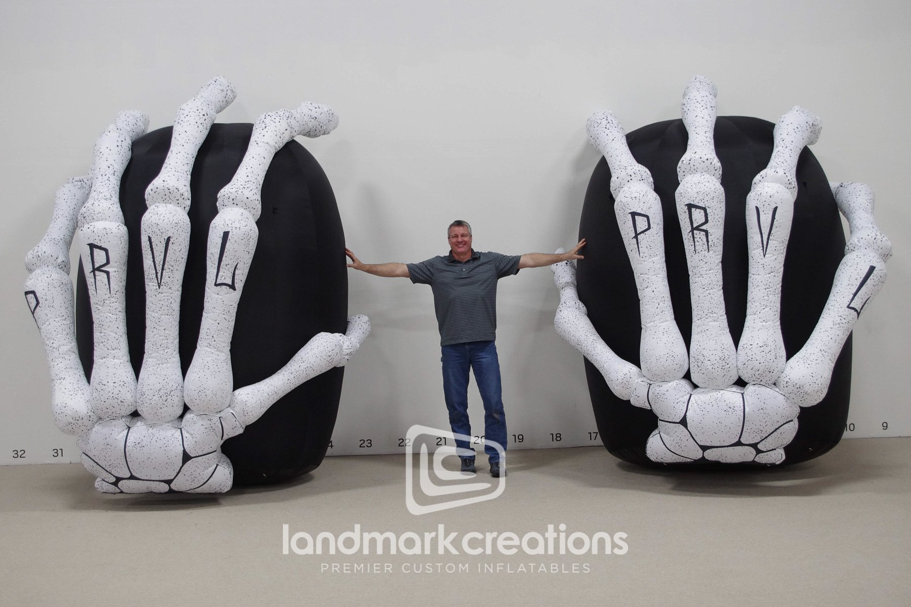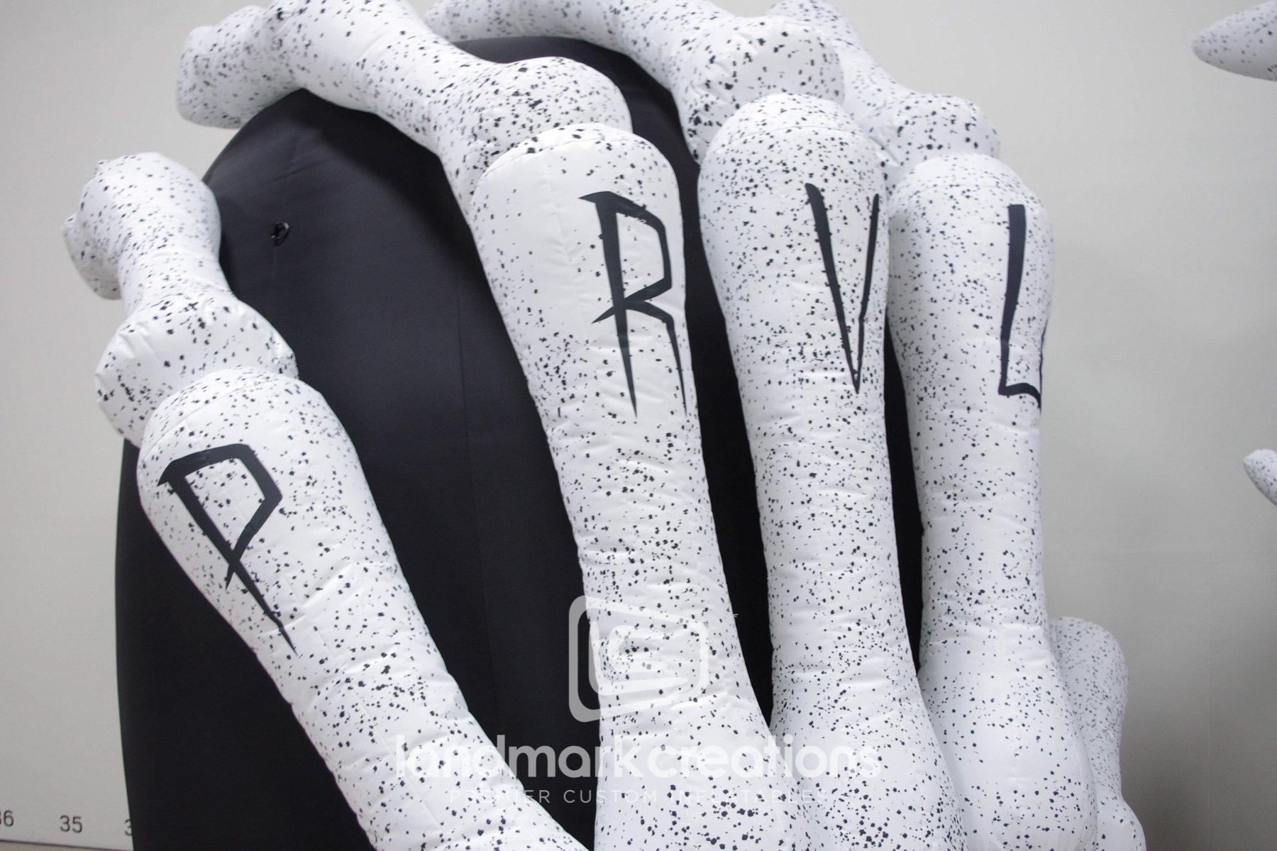 Detroit based band, I Prevail, created black and white custom inflatable skeleton hand displays on stage to coordinate with their brand image while adding an element of instant, visual 3D appeal.