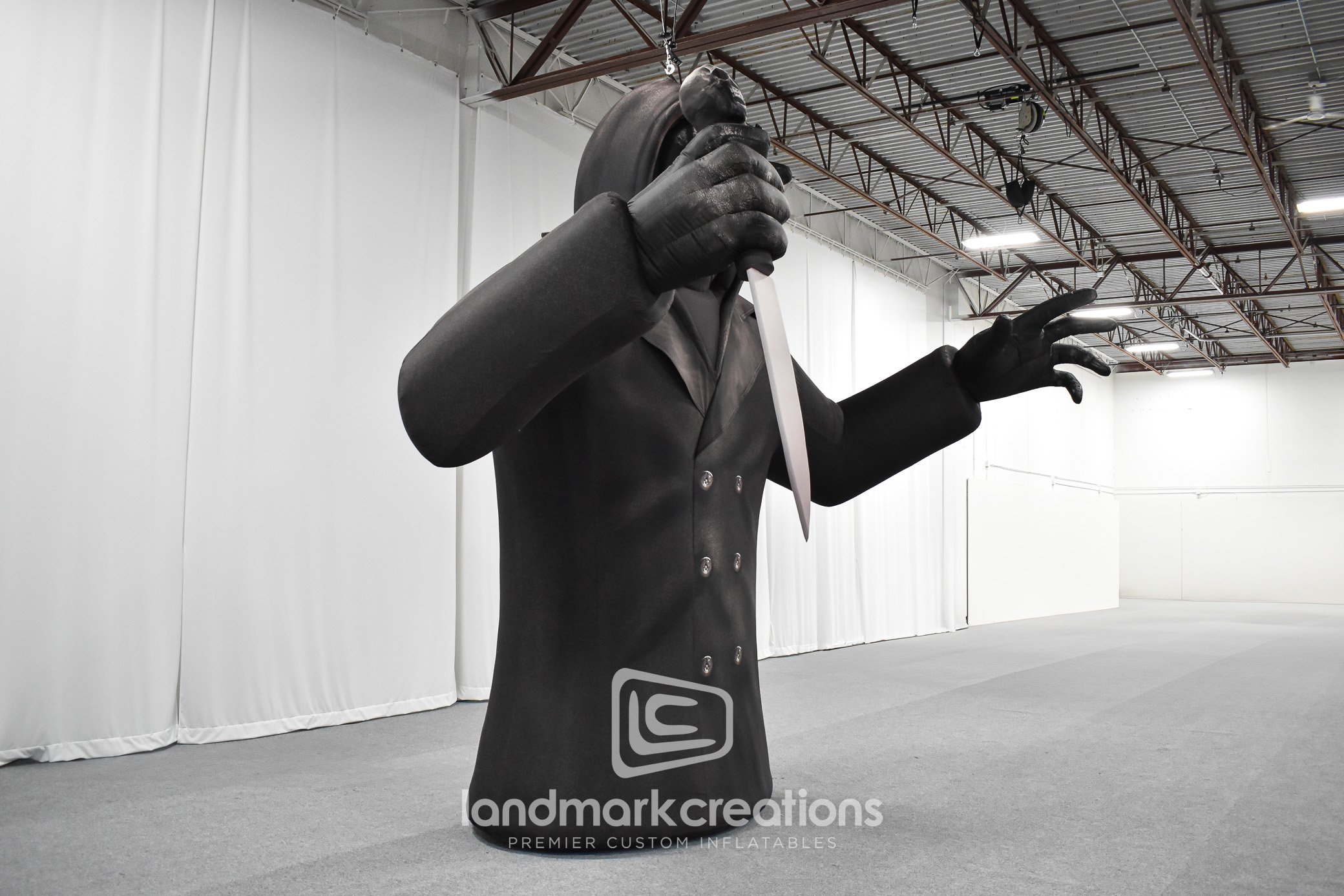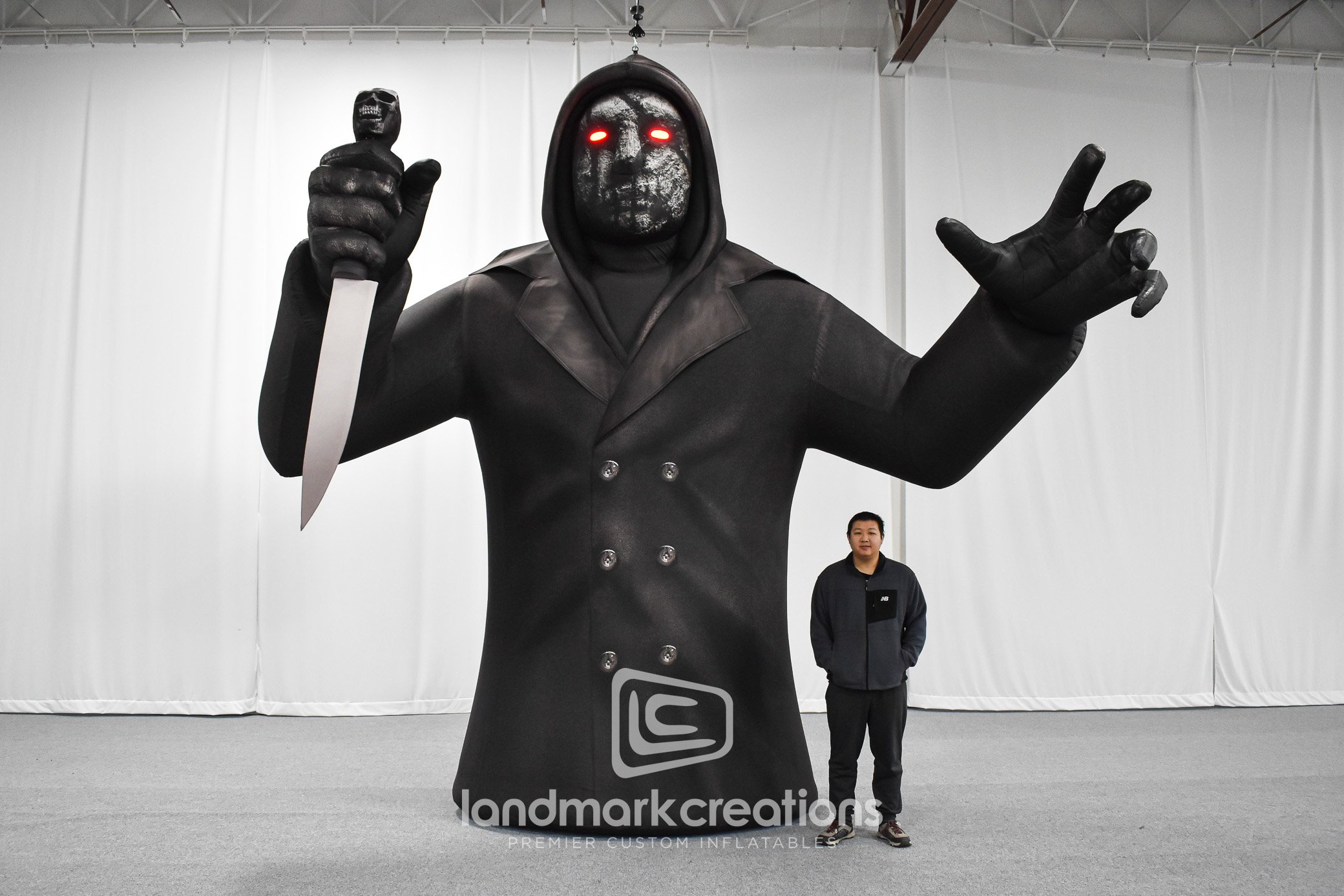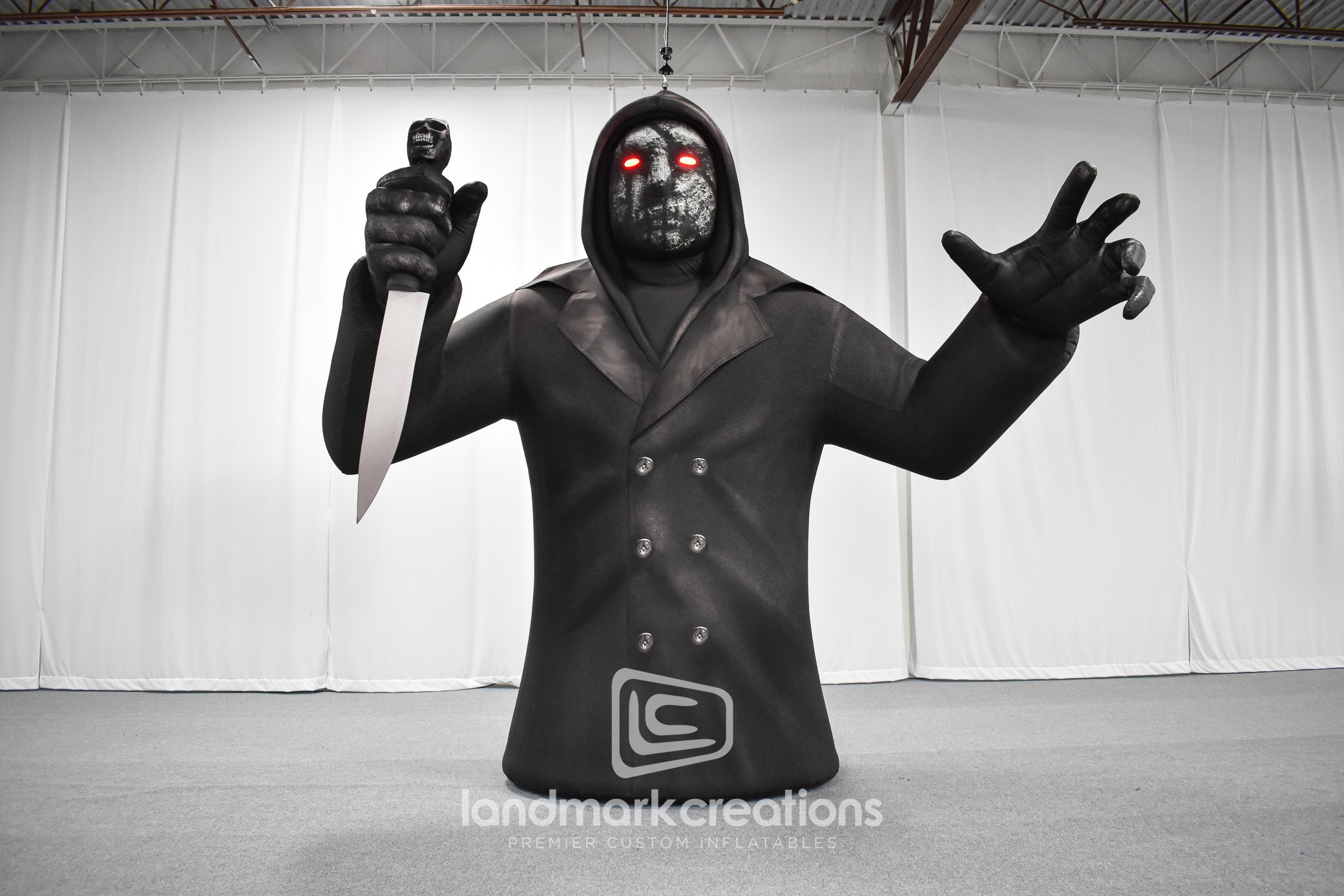 Created exclusively for Ice Nine Kills and their unforgettable concert experiences, this 15-foot grim reaper inflatable brings a chilling presence to the stage. Complete with glowing red LED eyes, this custom inflatable character was designed specifically for the band’s tour, adding a haunting visual element to their performances. While not available for purchase, it showcases our capabilities in delivering custom-made inflatables for iconic stage productions.