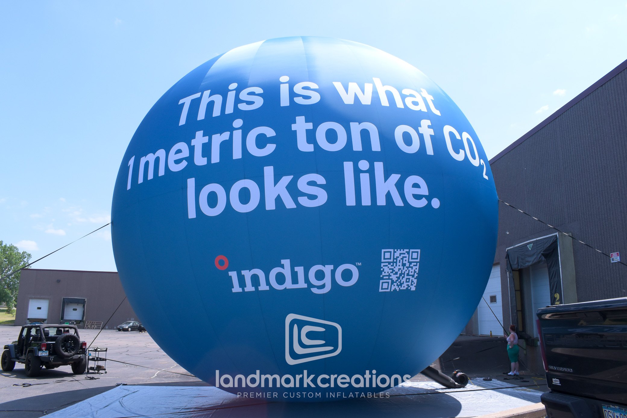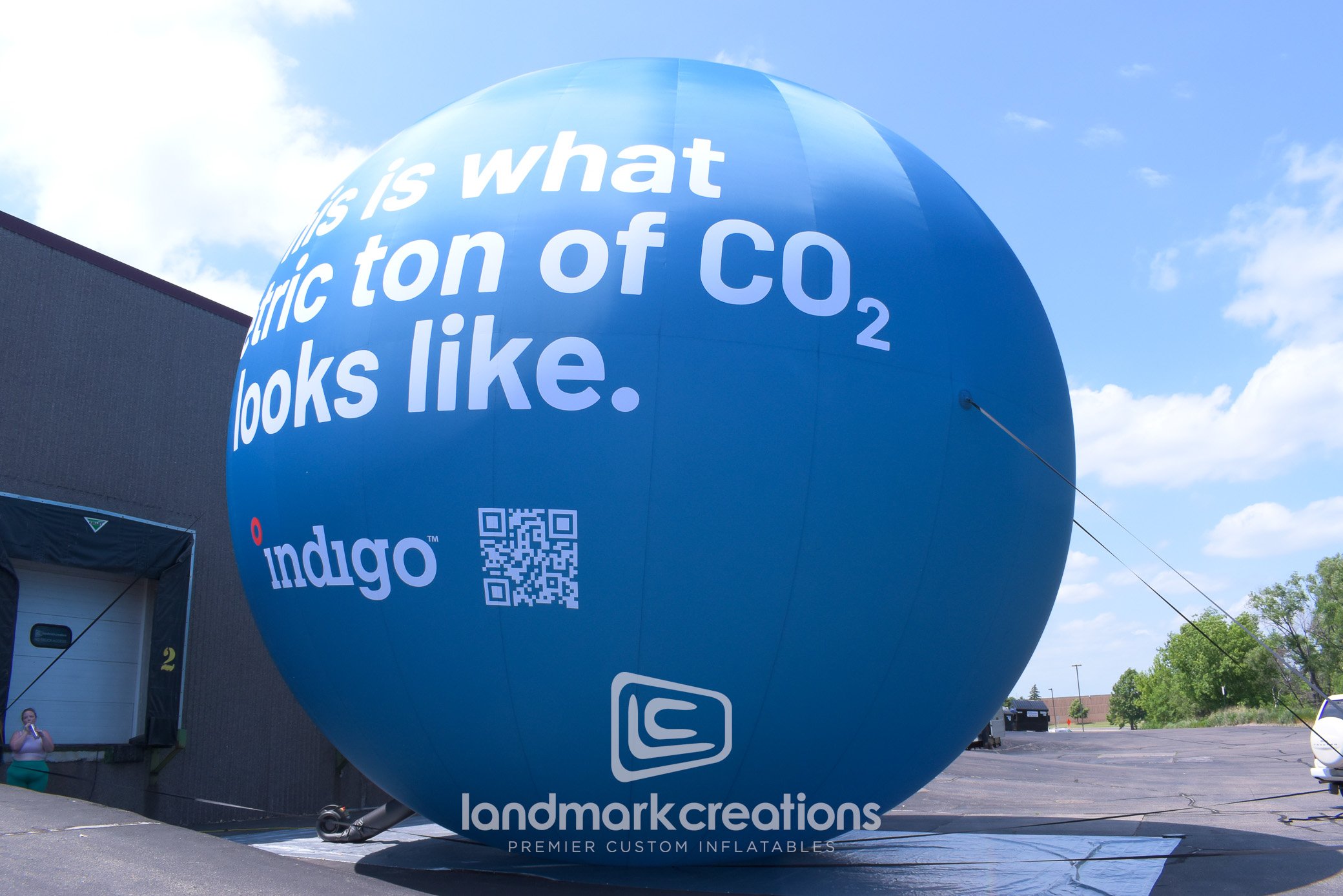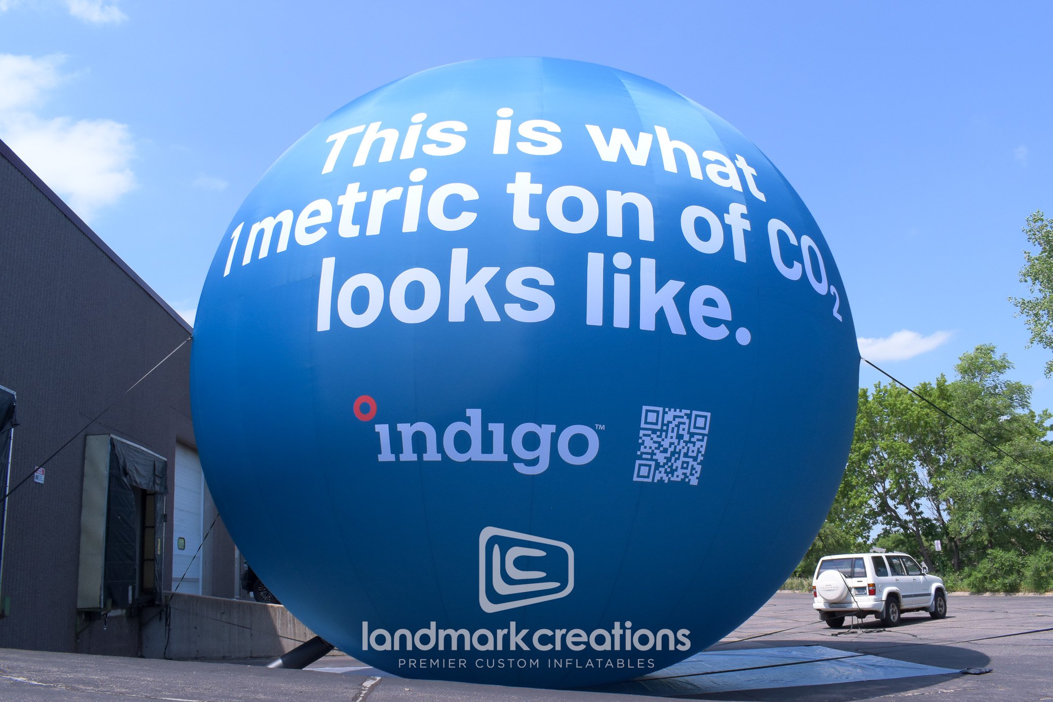 Indigo Ag, Inc. created a giant inflatable sphere to grab attention and promote their message of harnessing nature to help farmers adopt sustainable practices.The giant inflatable sphere, at just over 33-feet, represented one metric ton of carbon dioxide, and it included a QR for passersby to scan for more information about their solutions. Because inflatables pack small and are easy to transport, Indigo Ag is able to take their message on the road from event to event.