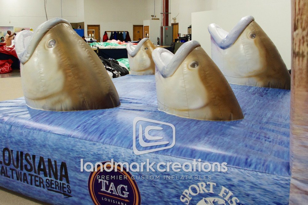 The Louisiana Department of Wildlife and Fisheries commissioned this custom-built, interactive pond inflatable. It was used to inform visitors about their Saltwater Series campaign, a program created to promote the conservation of Louisiana's sport fishing resources. The goal - to enhance the resource while providing a competitive opportunity for both avid and new fishermen.