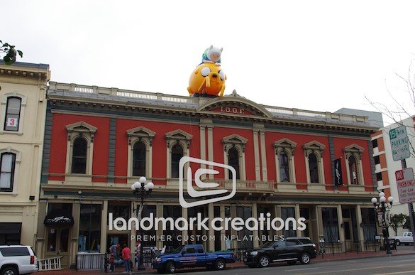 Cartoon Network placed their massive inflatable Jake and Finn characters on the roof of Ciro's Pizzeria in San Diego. The inflatable characters helped promote Comic-Con while Cartoon Network took over the restaurant and handed out free pizza to guests!