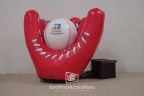 Crafted for Starmark's event benefiting Joe DiMaggio Children's Hospital, this custom inflatable red baseball glove replica featured a zippered palm for interchangeable baseballs, enhancing engagement at the Hollywood, FL fundraiser.