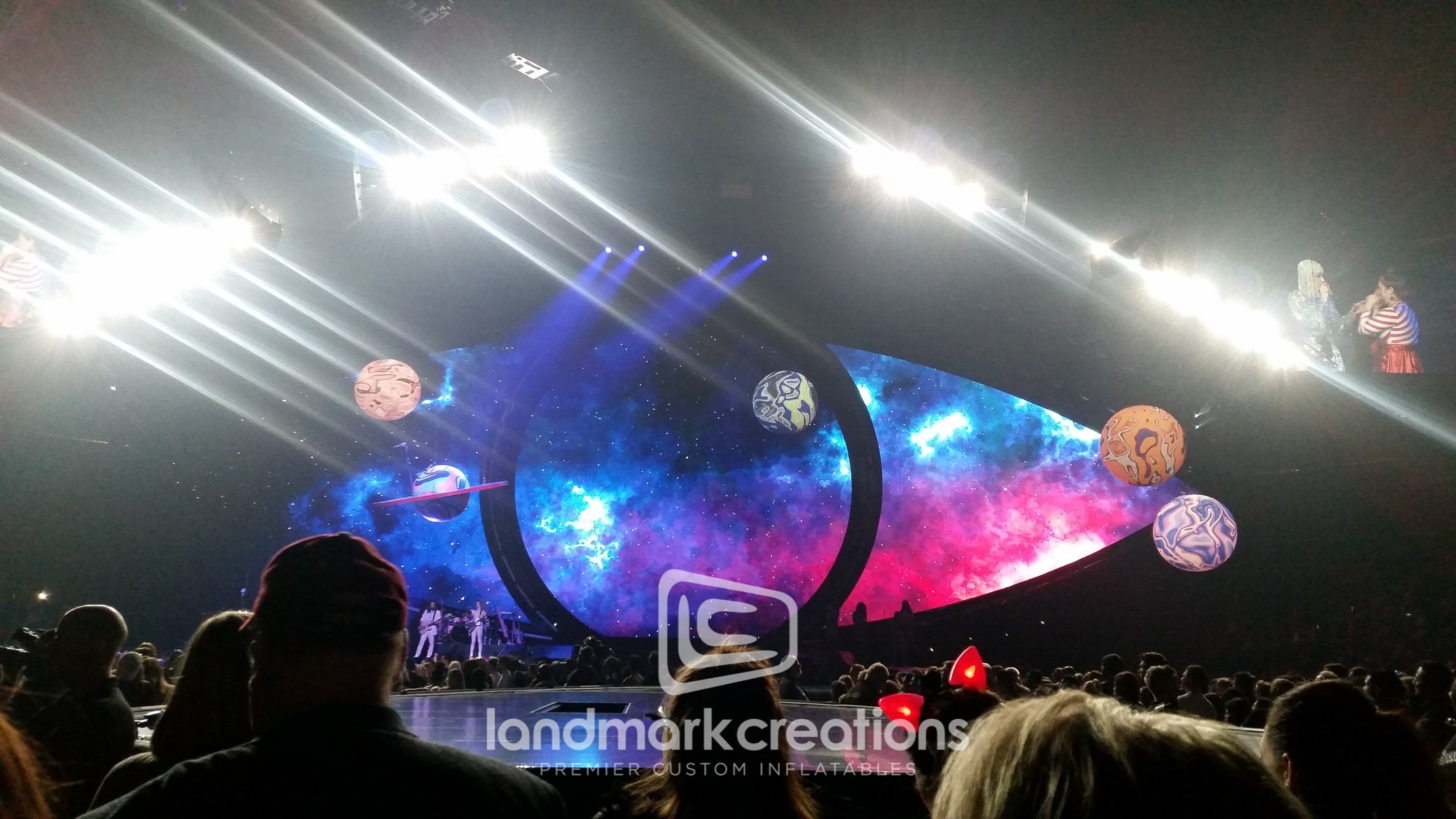 Katy Perry’s inflatable planets enhanced the stellar experience for fans seeing her live. Hung from the ceiling, these transportable planets accompanied Perry across the country helping make her concert out of this world!