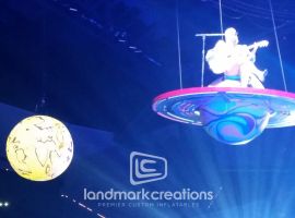 This otherworldly 25-foot-high robot arm was built as part of the set for Katy Perry’s headlining set at the 2019 OnePlus Music Festival in Mumbai. Although the surface may seem reflective, it’s not- the “digital chrome” fabric was specially designed for an illusory effect!