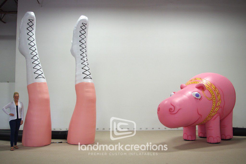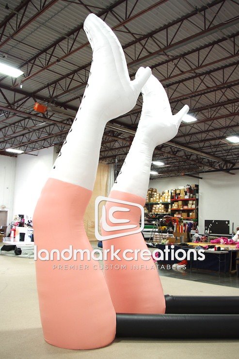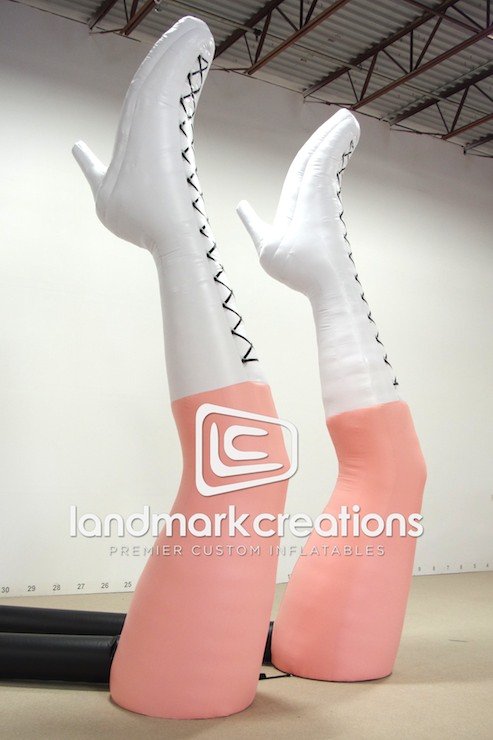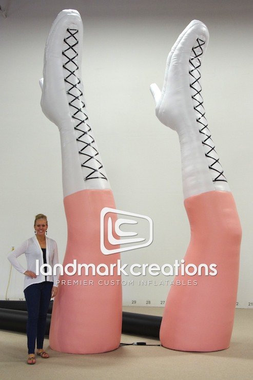 American singer-songwriter, Ke$ha, used this custom inflatable stage prop during her 2013 summer tour with Pitbull. The inflatable pair of legs, laced up in some serious boots, helps bring the stage to life!