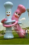These custom inflatable KIDS letters forming a giant letter "K" have friendly faces to attract attention and connect with children at outdoor events in Japan.