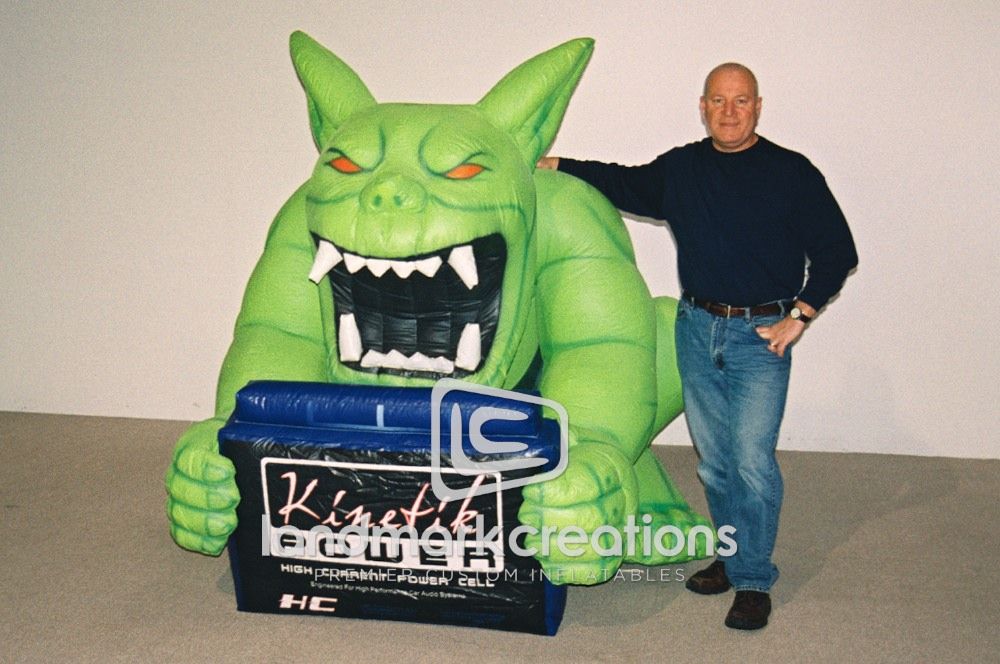 To attract attention at car shows and performance contests, Kinetik Audio inflates their gargoyle mascot. The inflatable green monster increases brand recognition and sparks conversation at a variety of events.