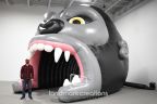 Seasonal retailer, Hale Fireworks, uses a giant inflatable gorilla head entrance tunnel to promote their popular "Kong" line of firework products. Inflatable entrance tunnels can draw attention to temporary retails spaces while offering a unique photo opp for shoppers. Inflatable displays pack small, so they're also very easy to transport and store between seasons.
