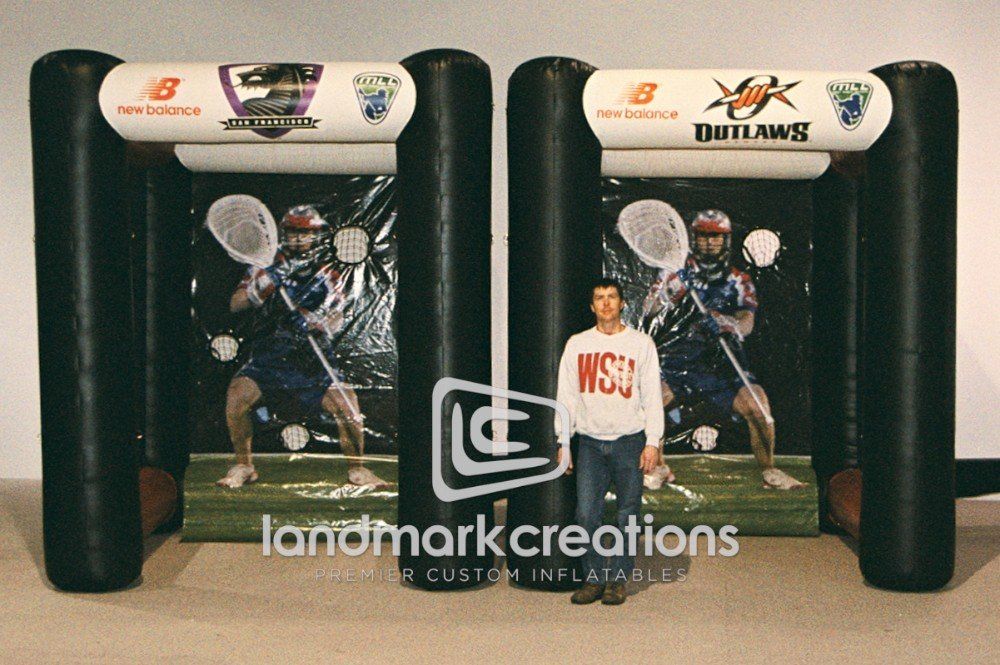 Inflatable portable lacrosse goals, like this one for New Balance, are marketing tools that stimulate interest and interaction with brands. Portable goals offer consumers brand experience at a variety of events including road shows and exhibitions.