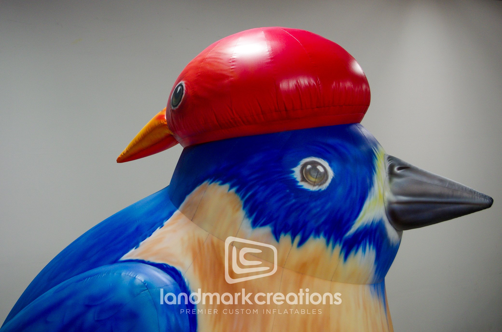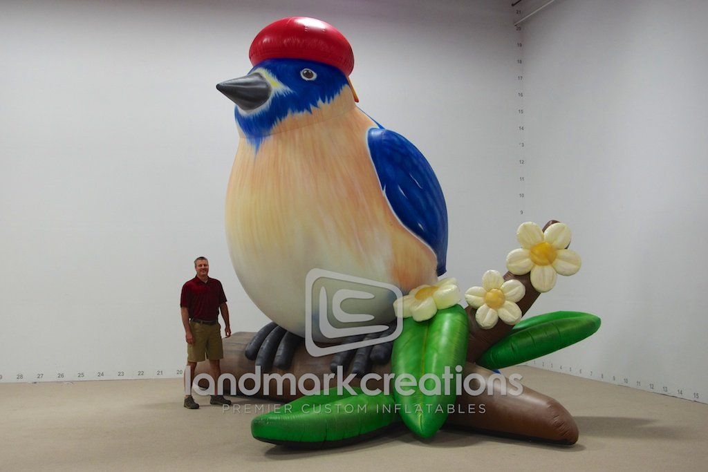 This inflatable sculpture, designed by artist Lamar Peterson, was displayed at the Rochester Art Center in Minnesota. The inflatable two-headed bird was displayed outdoors in the Remick Sculpture Garden and attracted plenty of attention.