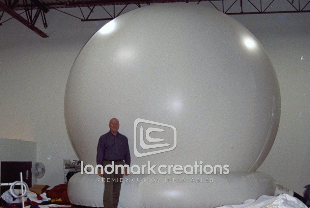 This custom designed inflatable sphere is used by an entertainment company to project film, images and laser light shows at special events.