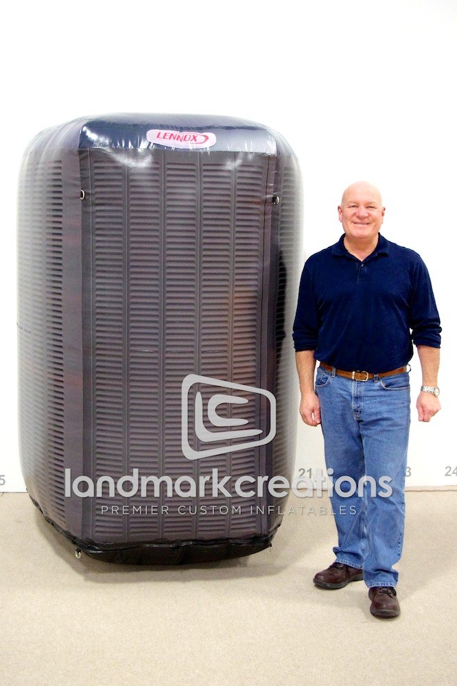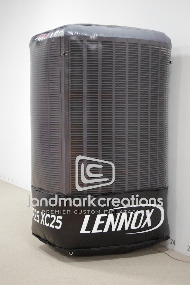 Show off your latest products with custom inflatables! Lennox International Inc. used their 8-foot-tall inflatable product replica of a Lennox air conditioner unit to promote their newest product at a sales meeting.