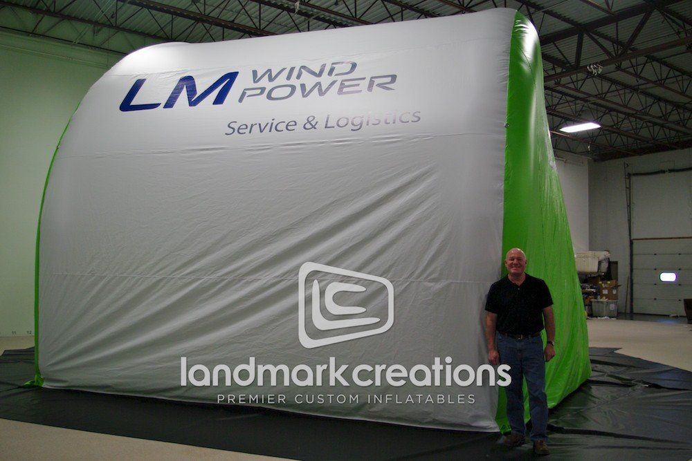 LM Wind Power Service & Logistics, a leading supplier to the wind turbine industry, built trust with customers through face-to-face marketing at events using this 17-foot custom inflatable q-hut.