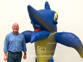 Car Wash Express increases traffic to their car washes by inflating this marlin costume. Dancing in the inflatable costume helps capture the attention of potential customers passing their location.