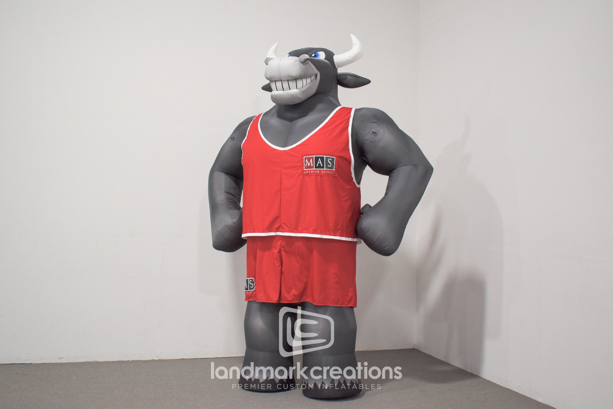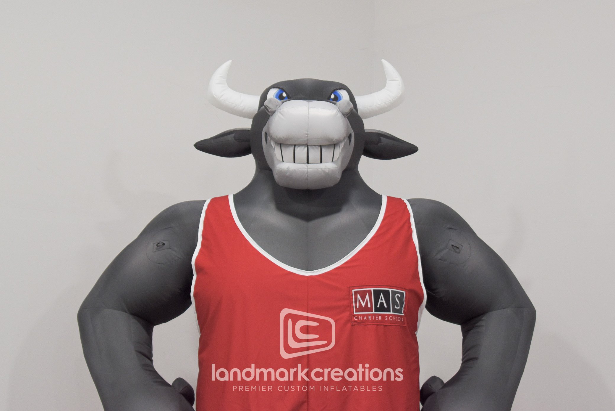 Mission Achievement & Success Charter School MAS created a giant inflatable of their bull mascot as part of their float for the Twinkle Light Parade. Because inflatable mascots pack small and are easy to transport between events, the MAS inflatable bull will be able to connect with students and crowds at various school and community events.