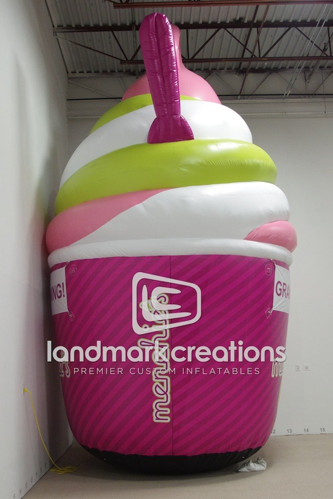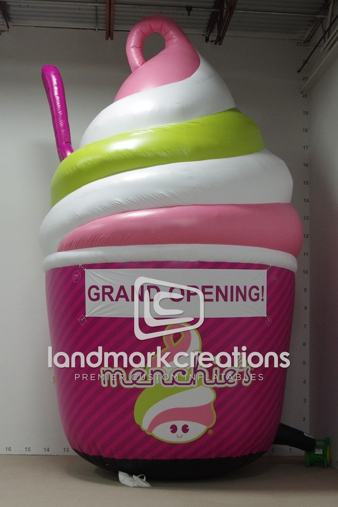 This giant frozen yogurt cup featuring Menchie's signature kiwi strawberry swirl treat is sure to attract attention at the yogurt shop's grand opening events.