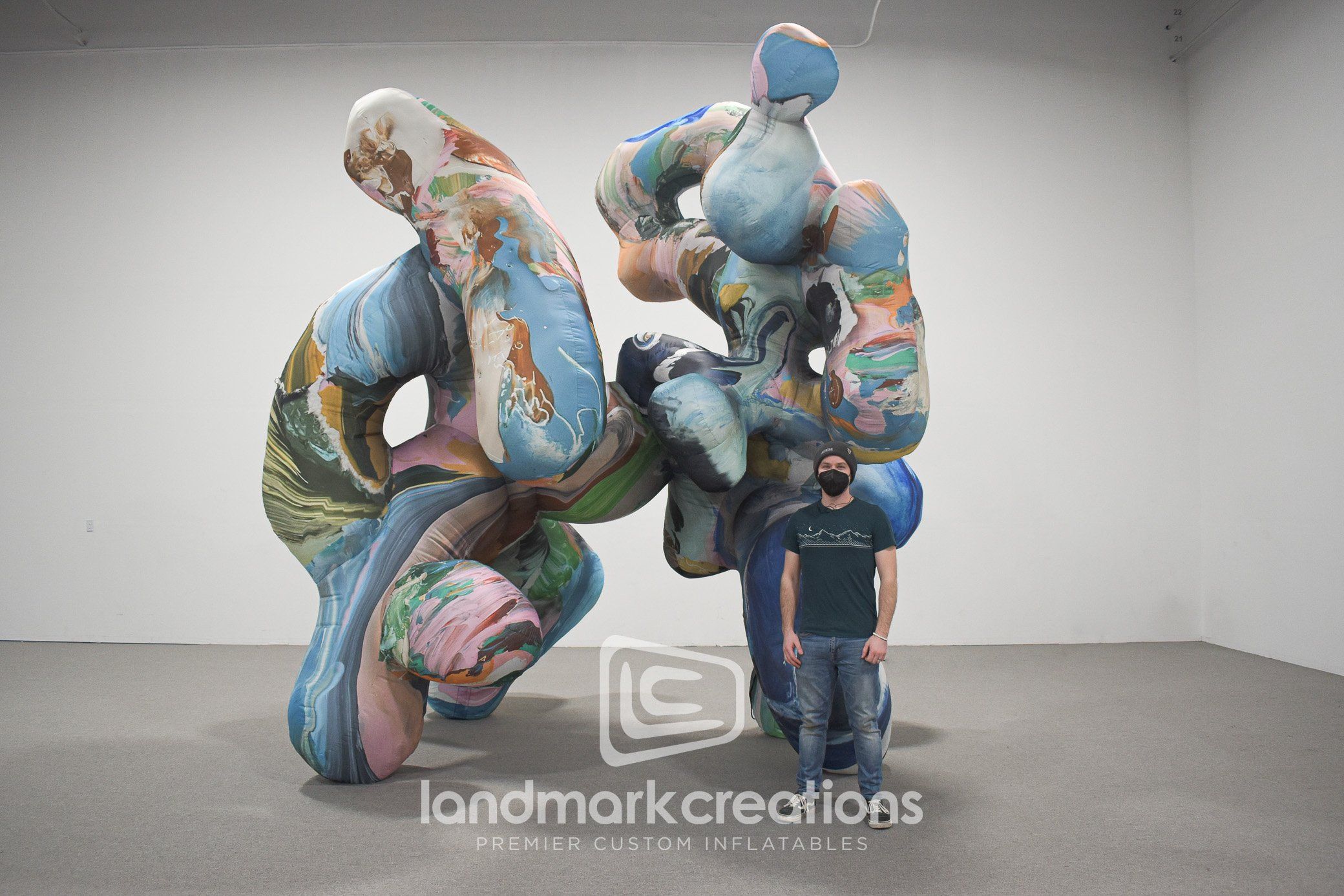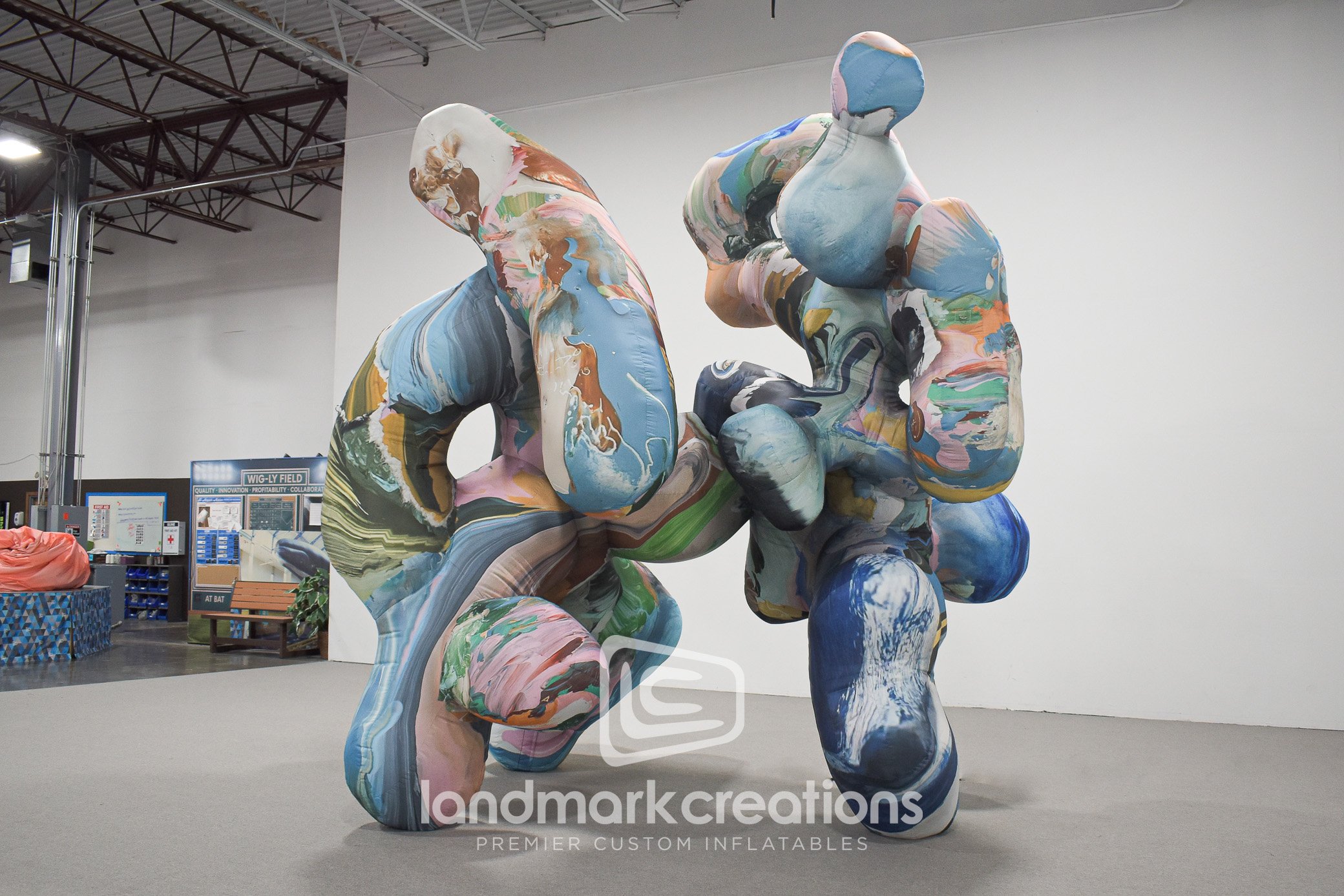 This giant inflatable abstract sculpture was created as a display piece on the second story balcony of the Museum Villa Stuck as part of Misha Kahn's "Under the Wobble Moon" exhibit. Custom inflatables make perfect statement pieces because they're easy to set-up and store between events, which allows artists and art museums to add large visuals to an exhibit space at the flip of a switch. #MISHAKAHNMVS