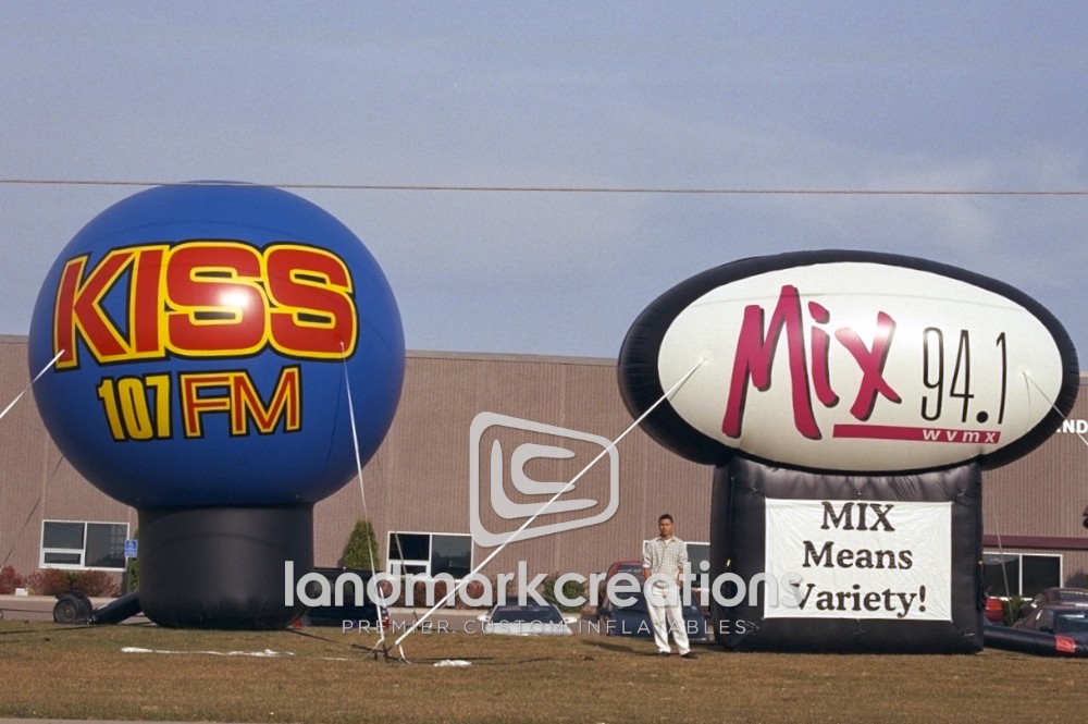 Attract attention at fairs, festivals and outdoor concerts with a custom inflatable logo like this Mix 94.1fm logo display. Inflatable logos and billboards are easy to inflate, manage and store, so you can take them quickly from event-to-event.
