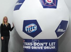 TEAM Coalition, a non-profit alliance seeking to increase designated drivers and responsible sports fans, inflated this soccer ball replica at the MLS Cup. Professional soccer players and fans alike were asked to sign the inflatable soccer ball and pledge to be designated drivers!