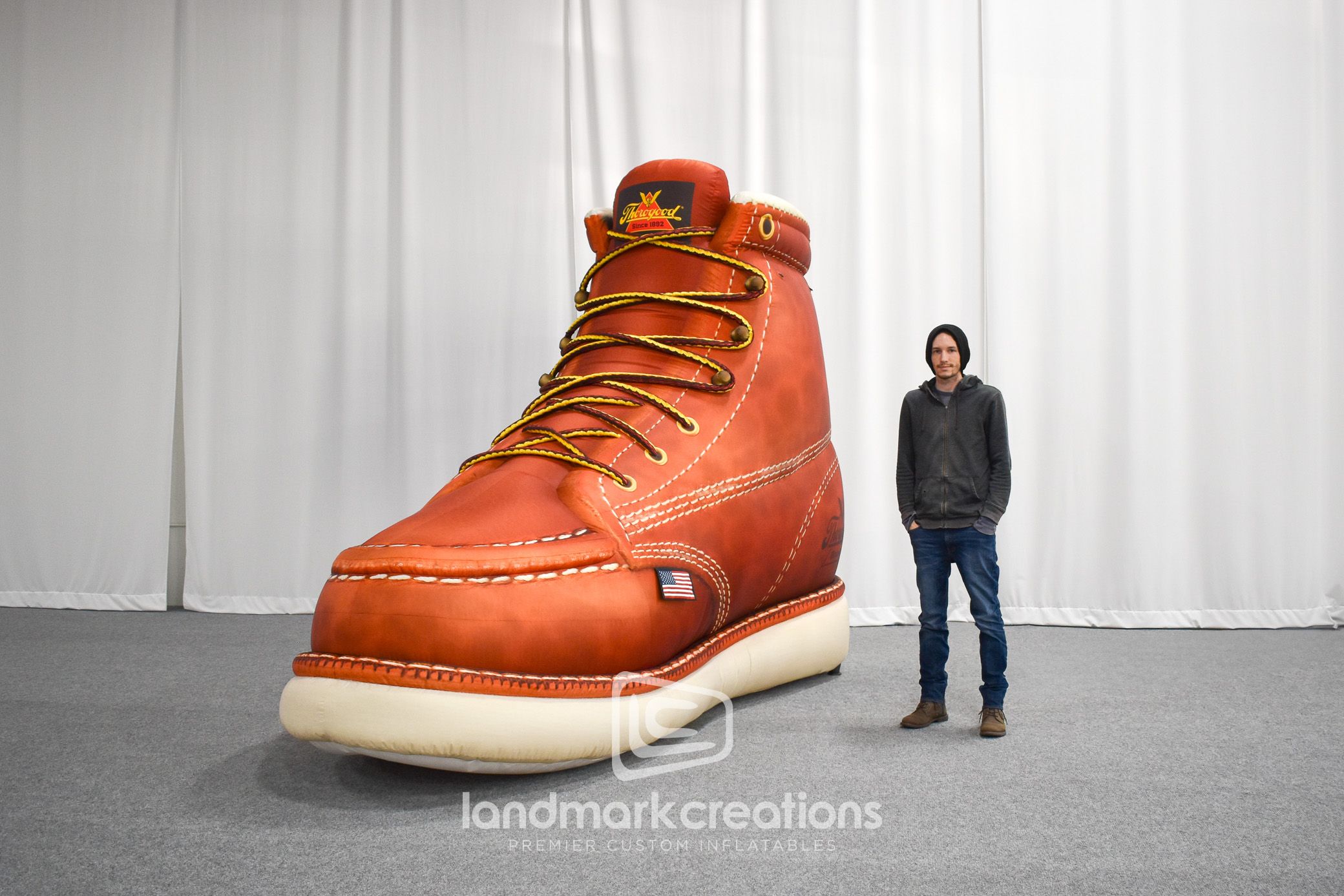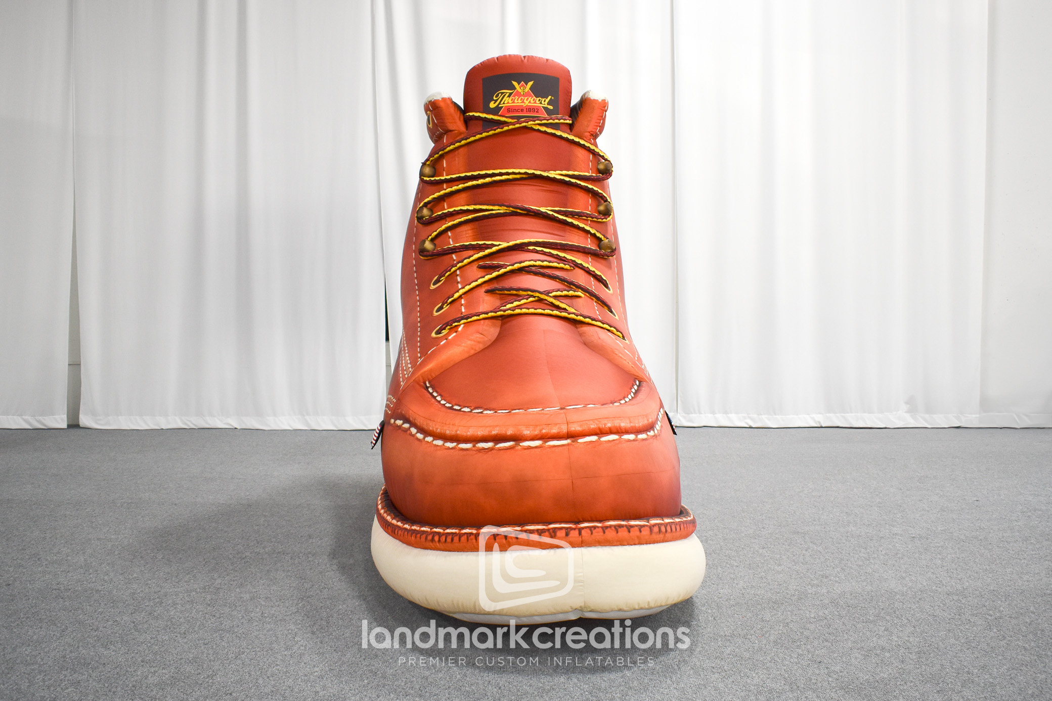 We crafted a striking inflatable replica of Thorogood®'s iconic Moc Toe Boot, complete with an American flag emblem. This attention-grabbing piece is ideal for retail promotions, showcasing Thorogood®'s commitment to quality and American craftsmanship.