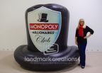 This 9-foot-tall inflatable top hat was displayed in New York City to promote the Monopoly Millionaires Club! Visitors took pictures with the inflatable hat and it served as a nice backdrop for video footage taken by the local media.
