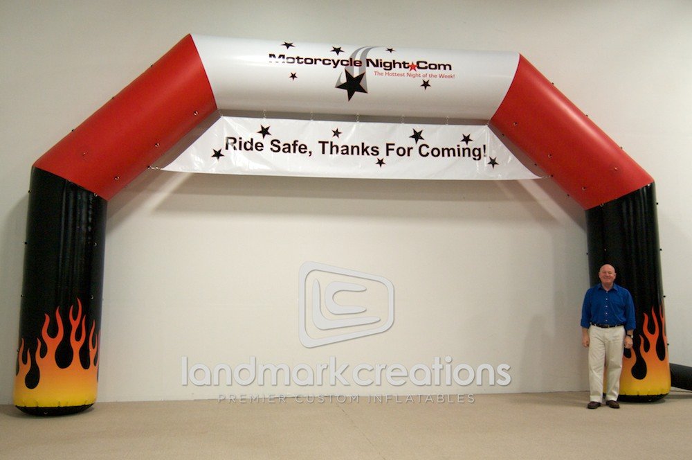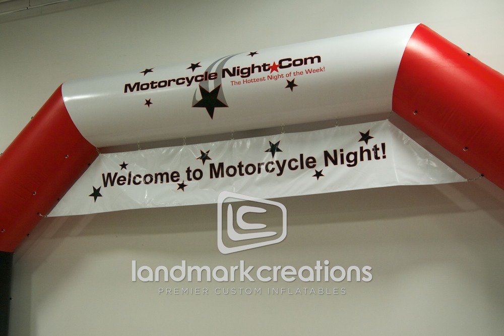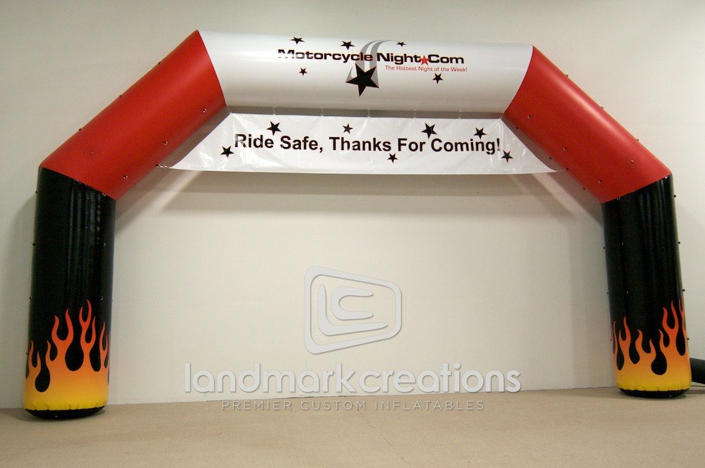 Motorcycle Night welcomes visitors to their weekly events with this inflatable archway. Custom designed with flames and a star studded banner, this archway creates buzz for the local motorcycle community all summer long.
