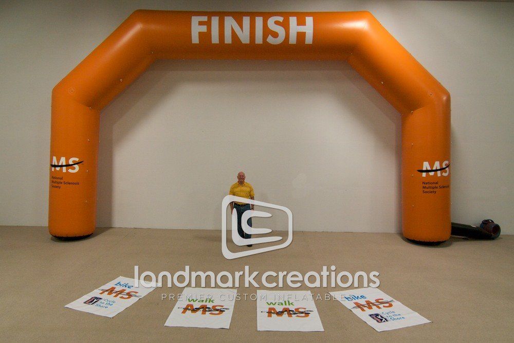The National Multiple Sclerosis Society uses their inflatable finish line arch at Bike MS events. Shown with interchangeable banners for event branding.