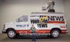 This inflatable van replica for WFMZ-TV news station, serving eastern Pennsylvania and western New Jersey, is used to promote their newly-designed news trucks at fairs and festivals.