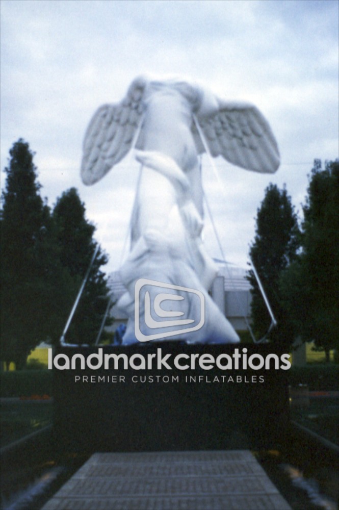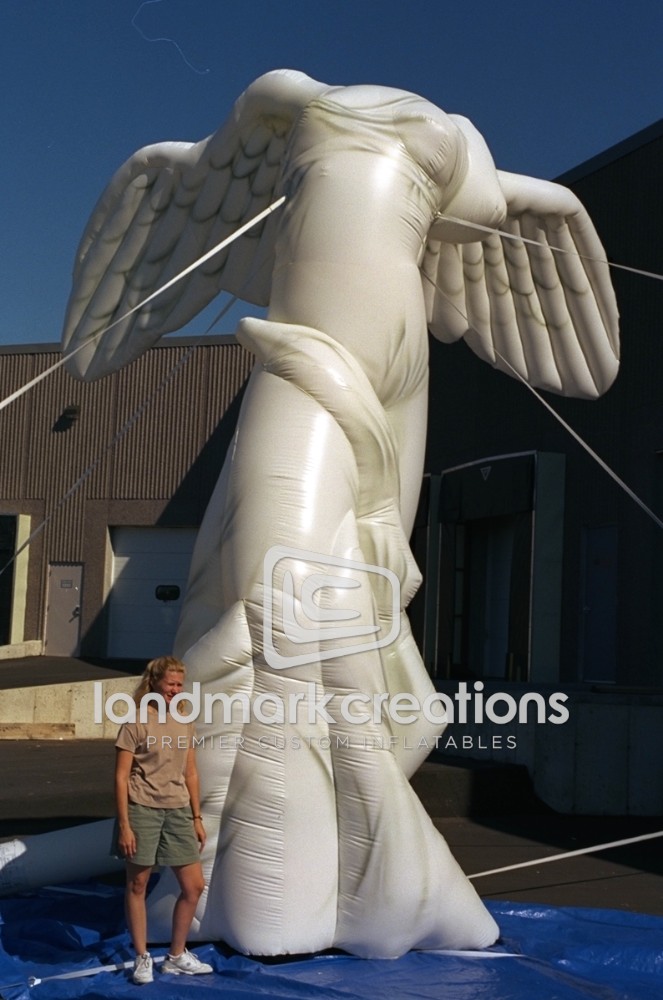 This inflatable sculpture was designed to resemble Nike, the Greek Winged Goddess of Victory, who embodied strength, speed, and victory.