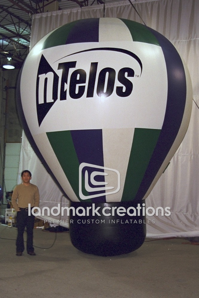 This Ntelos hot air balloon shape showcases the brand's identity in outdoor marketing campaigns. Its striking design ensures visibility and engagement.