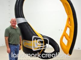 To attract trade show visitors to their booth at the 2013 International Consumer Electronics Show CES in Las Vegas, ONKYO inflates this giant headphone replica. The giant headphones contain functioning speakers in the earpieces to play live music, enticing attendees to the ONKYO booth to learn more about their technology and sound-enhancing products.