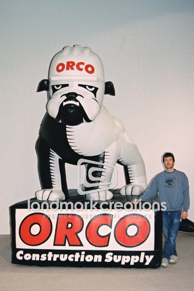 Orco Construction Supply turned their mascot into a giant inflatable advertising tool. This inflatable bulldog mascot attracts attention at community events!