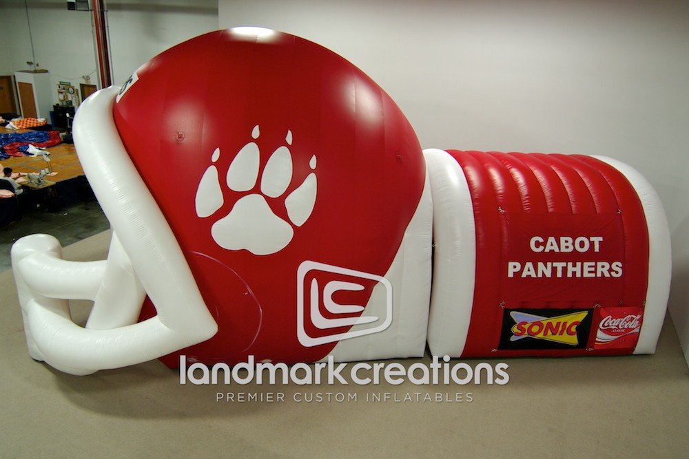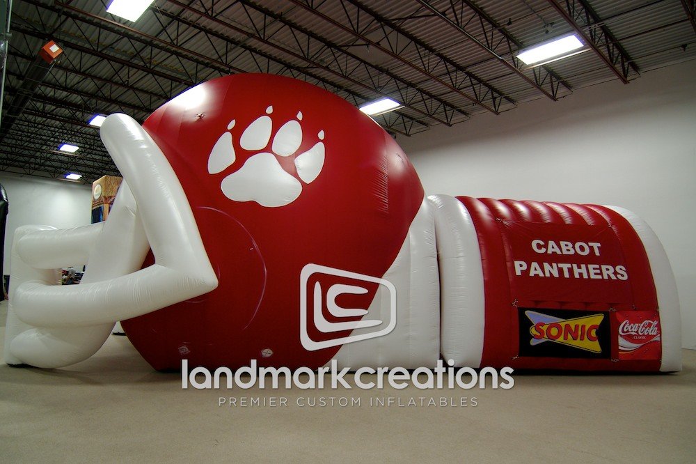 Thanks to the support from a local Sonic Drive-In and Coca-Cola, the Cabot Panthers entered the field through this custom-designed inflatable football helmet tunnel. Advertisement banners are perfect for sponsors who helped purchase the inflatable tunnel.