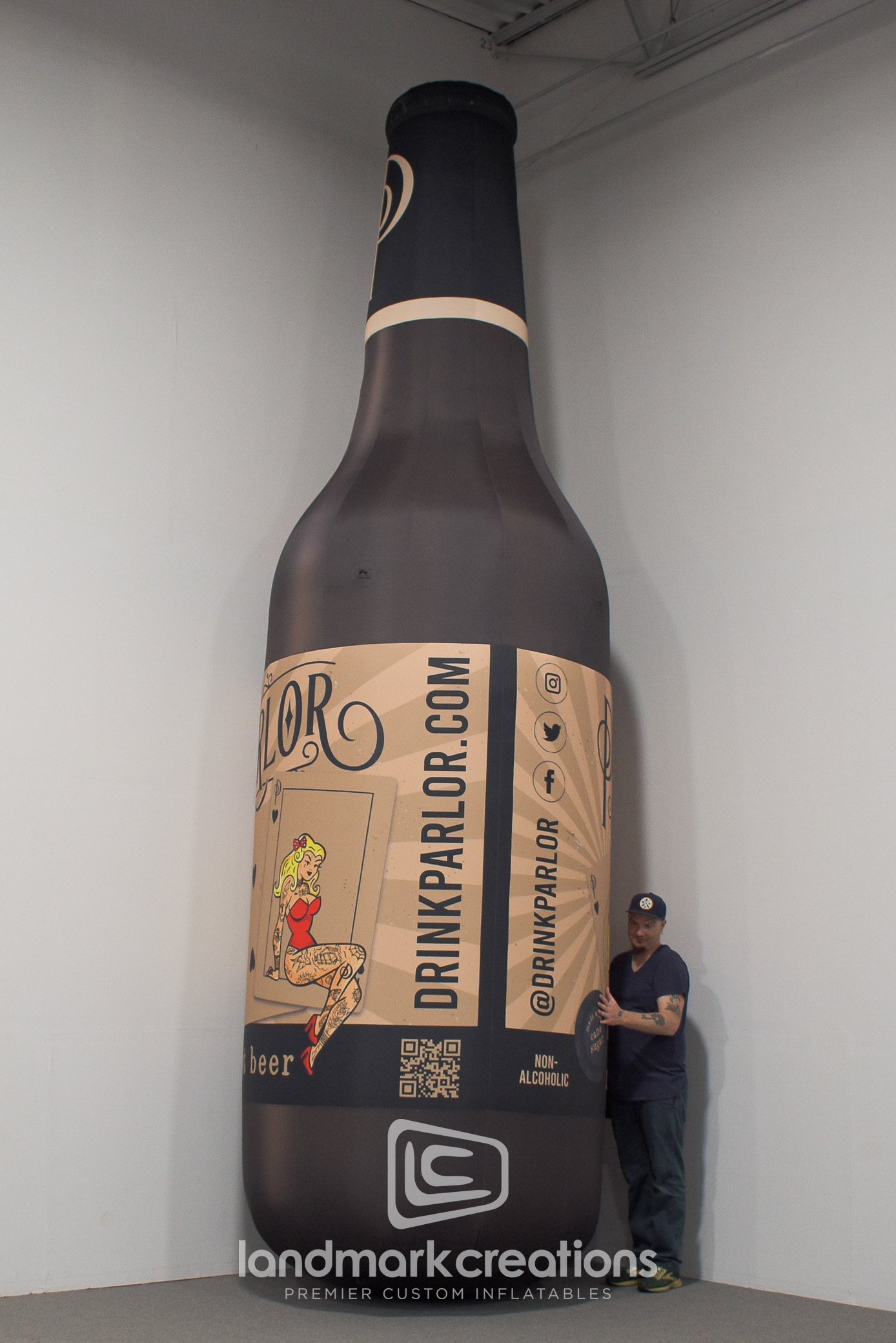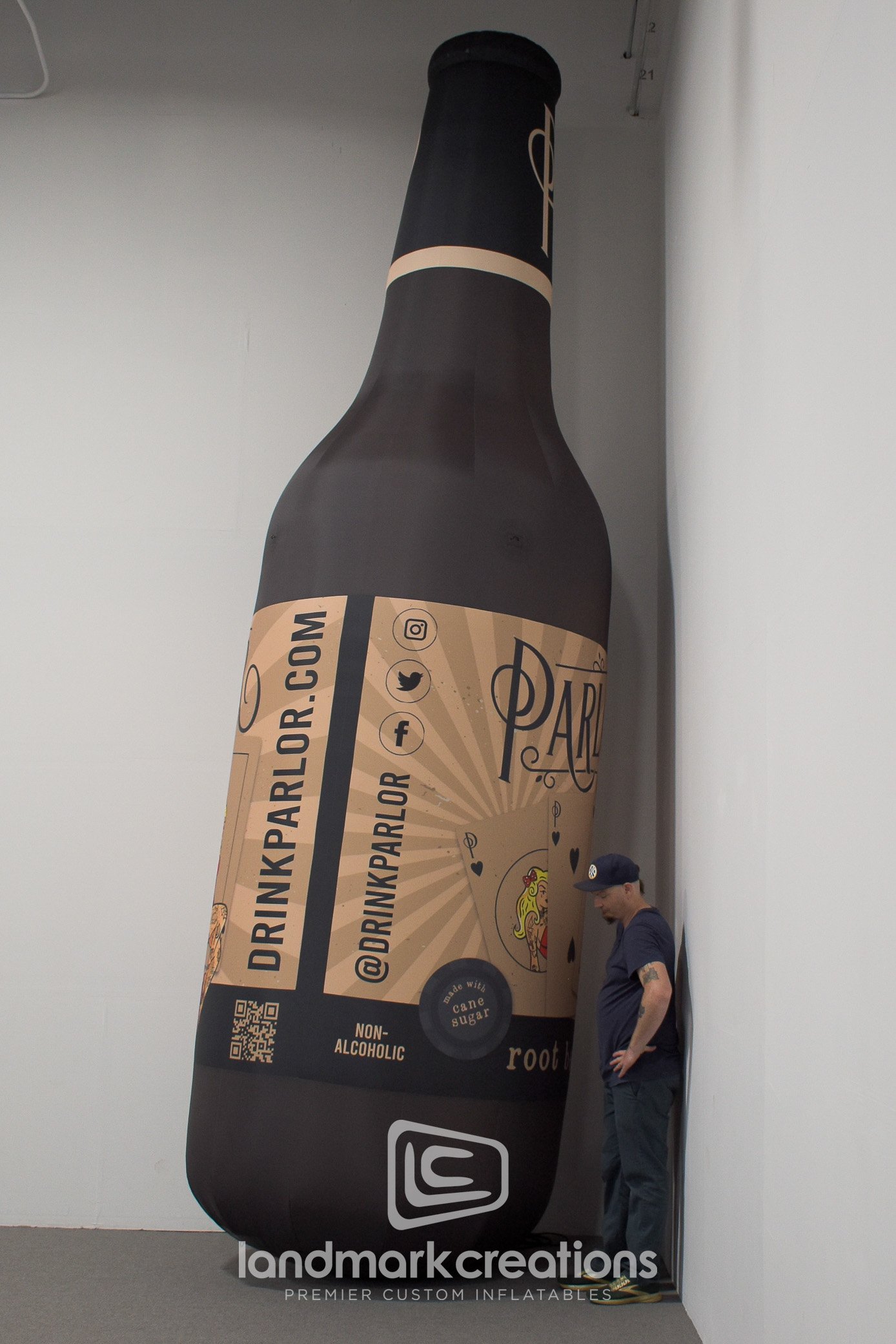 Parlor Beverages creates brand recognition at Blue Ridge Rock Festival with their giant inflatable Parlor root beer bottle display. Giant inflatables create terrific photo opps at festivals, allowing your brand to extend its reach on social media beyond the event.