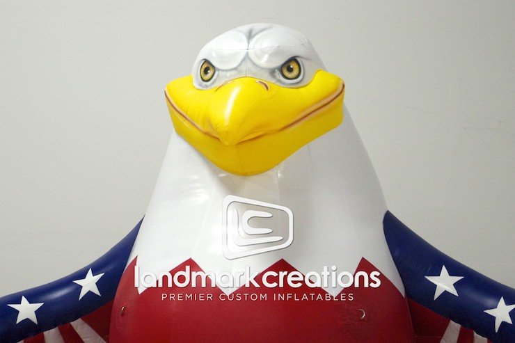 Patriotic themed inflatable mascots attract massive attention during parades! Sunshine for Humanity, Inc., a charitable organization that raises funds for birth defects and genetic diseases, awed audiences when they displayed this inflatable red-white-and-blue eagle during local parades.