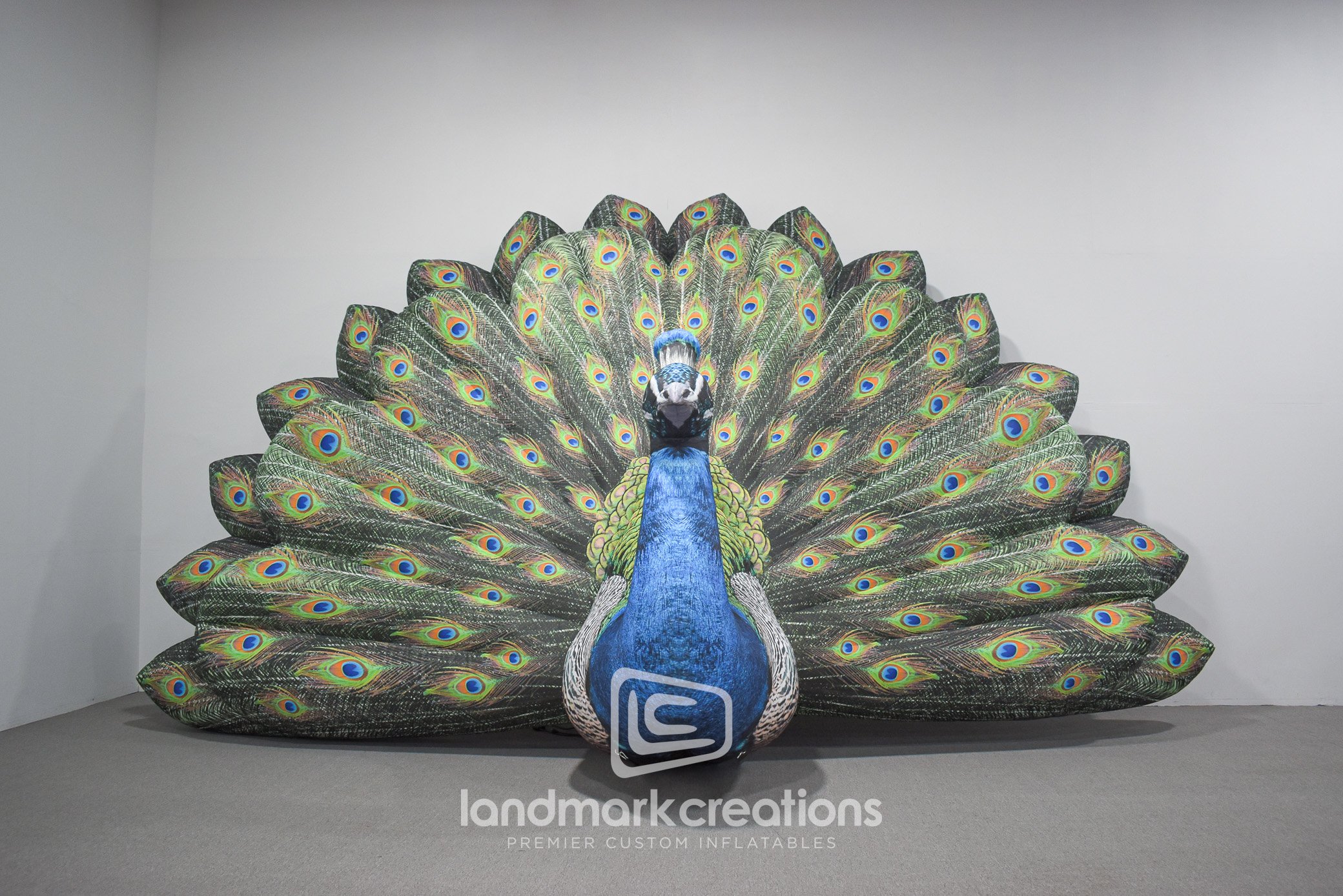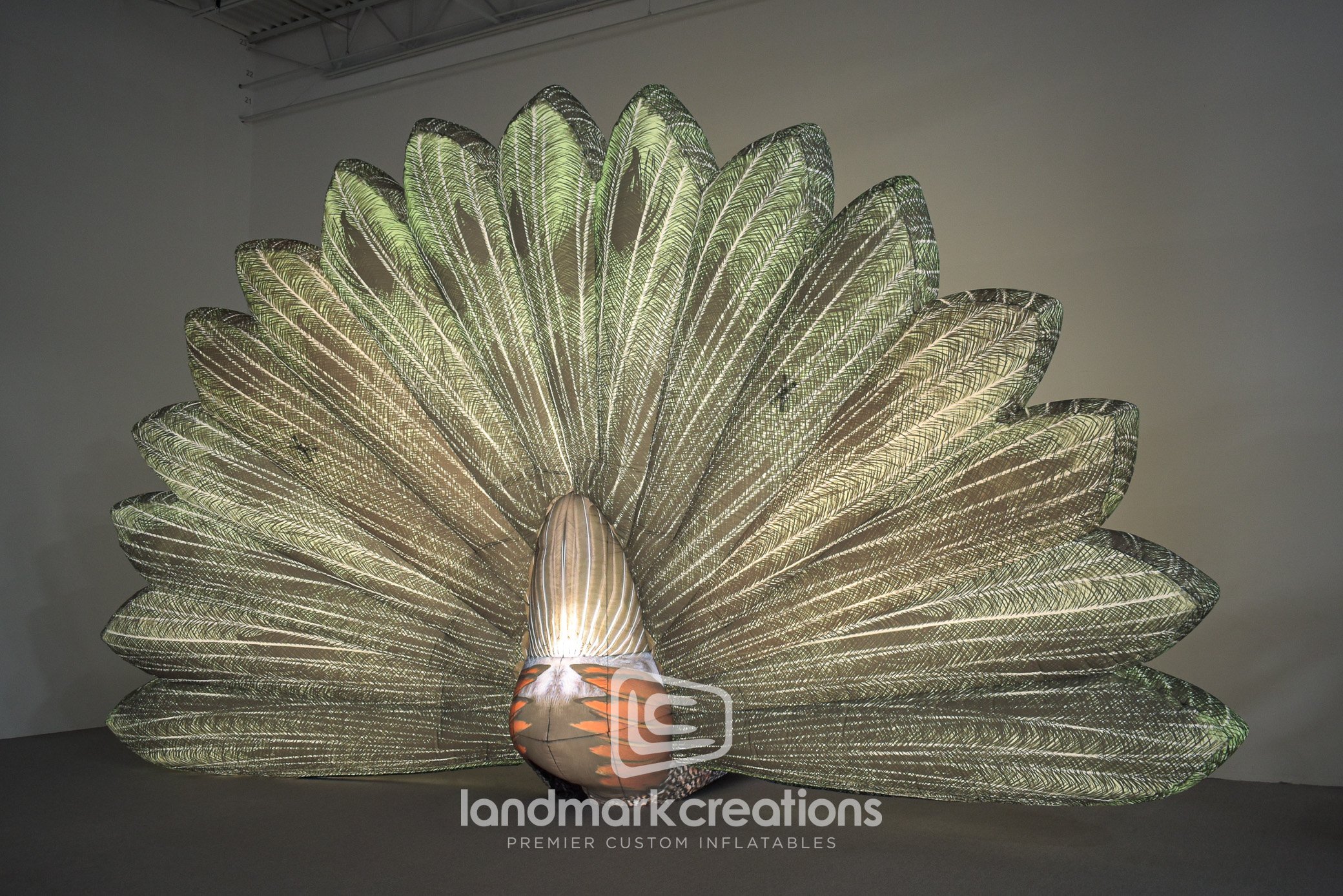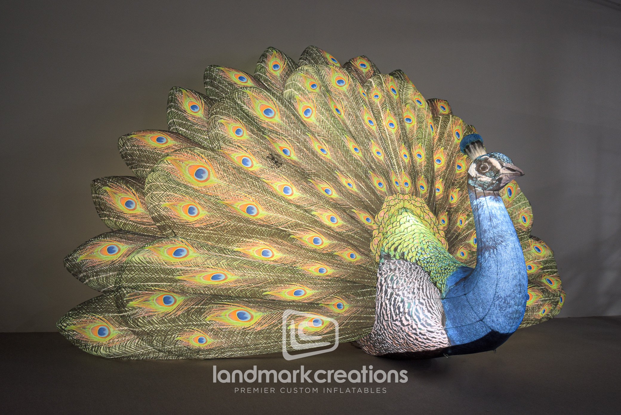 The vivid colors of the Cheyenne Mountain Zoo's new inflatable peacock replica is sure to delight visitors to the zoo's annual "Electric Safari" light show event. The peacock's internal light system will allow the bird to stun crowds at both daytime and evening events.