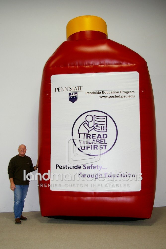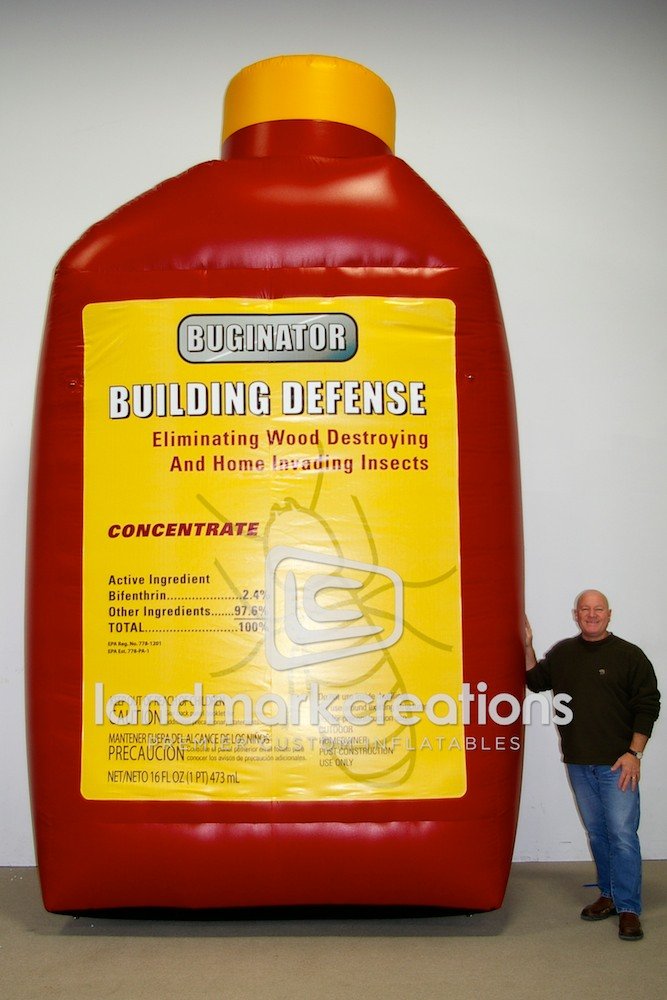 Need a creative idea for marketing a new pesticide product at trade shows and marketing events? Inflatable product replicas, like this giant Buginator bottle, get instant brand recognition and showcase the packaging design of branded products.