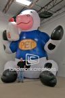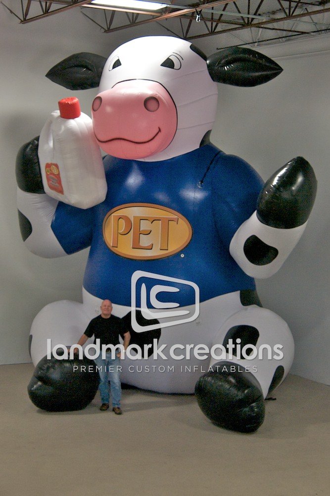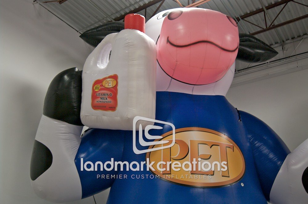 Dean Foods uses this inflatable cow mascot outside of grocery stores to promote their brand. A smart and effective way to welcome customers to try their dairy products.