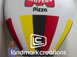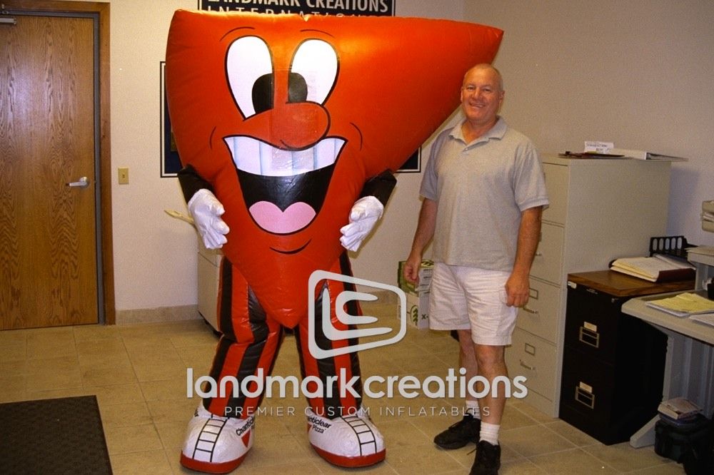 Custom inflatable mascots are a fun and creative promotional tool. Chanticlear Pizza uses this friendly mascot to promote their pizza restaurant at parades, store openings and on local news stations.