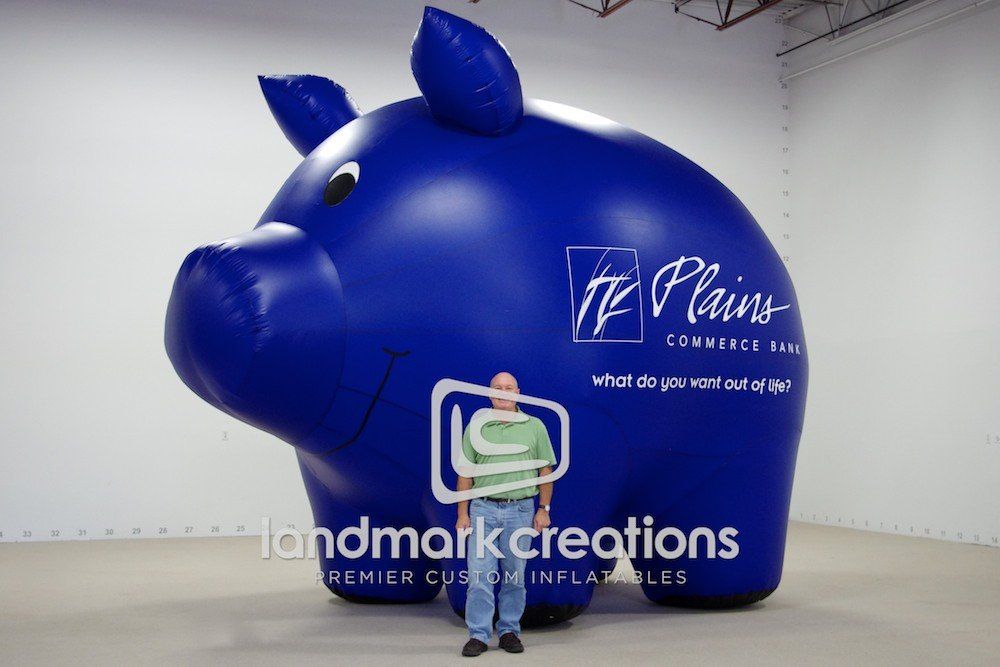 Great Plains Commerce Bank's inflatable piggy bank is a local icon. Existing bank members and individuals at local marketing events took pictures with the giant pig and shared the images on social media sites like Facebook.