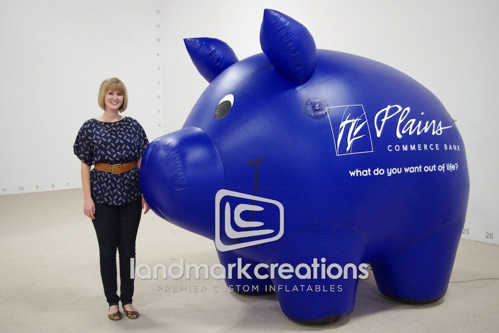 Custom inflatables add interest to community events and promotions. This inflatable piggy bank for Plains Commerce Bank increased visual appeal at marketing events.