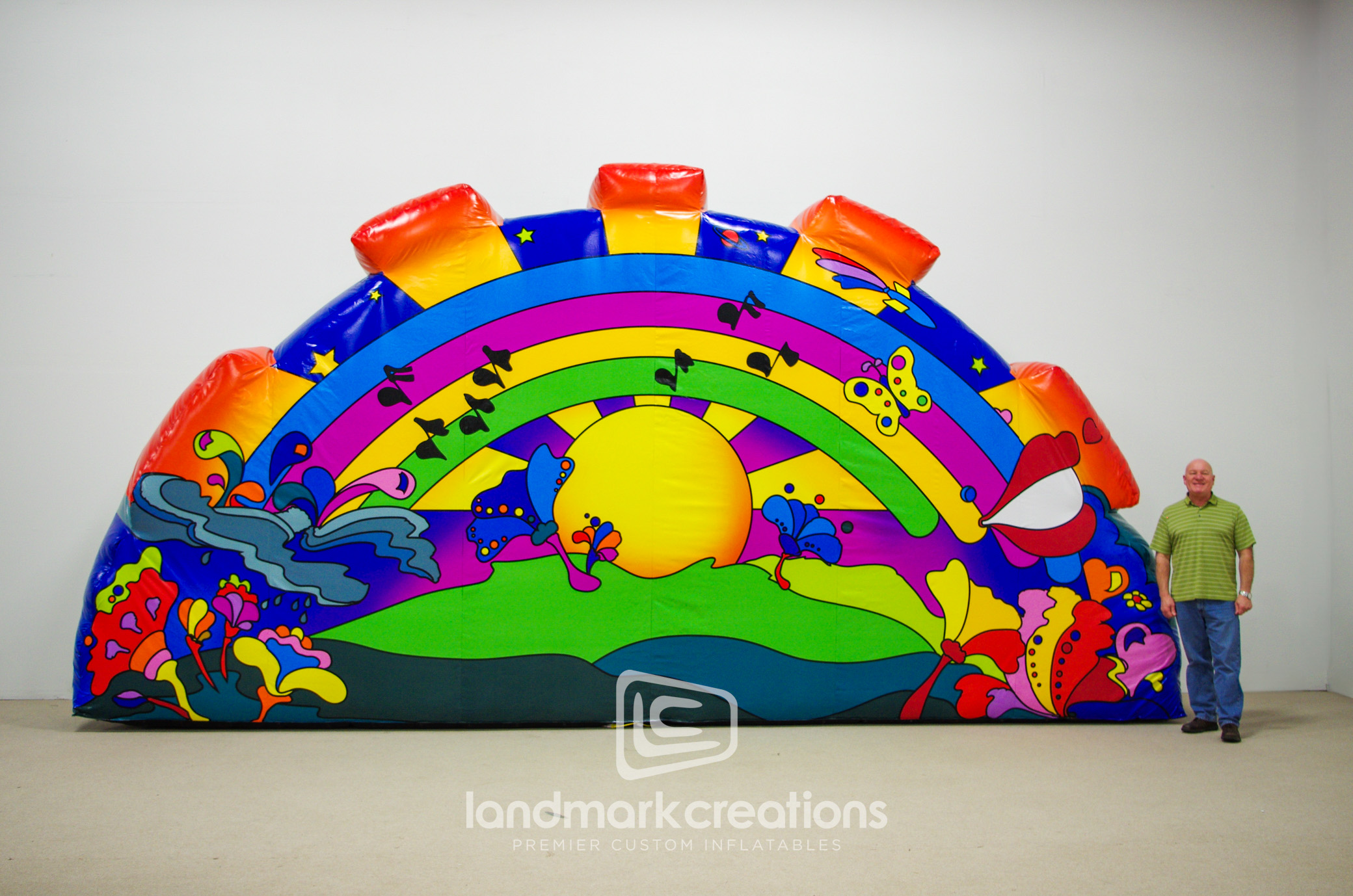 Our custom inflatable stage backdrop, the Psychedelic Stage Piece (12x24x3 feet), is designed to captivate audiences during live performances. This vibrant and dynamic inflatable was created for Scenery First to elevate concert and tour productions, making a bold visual impact. Explore our full gallery of innovative inflatables that transform stage designs and concert sets.