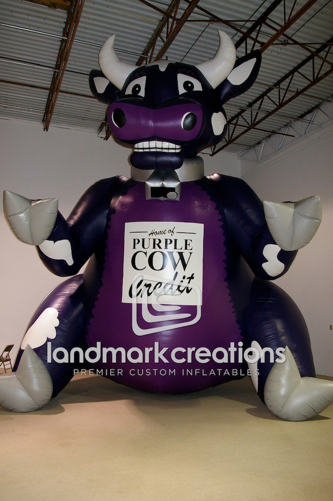 Draw attention to financing options available at your automotive retail location by inflating a custom-designed mascot like this giant Purple Cow Credit mascot for Vaden Hyundai in Georgia.