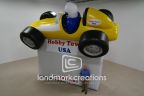 Inflatable billboards, like this 15-foot tall race car billboard for Hobby Town USA, can be designed with a message area. Personalize messages to welcome car enthusiasts to your event or inform customers of new promotions.